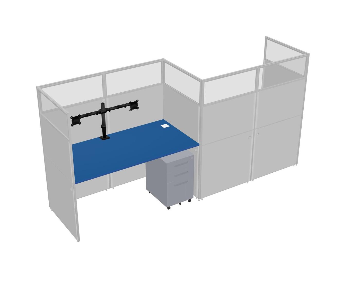 Prism Blue Rectangular Cubicle Workstations For 2 - Zigzag Formation + Grey Metal Mobile Drawers