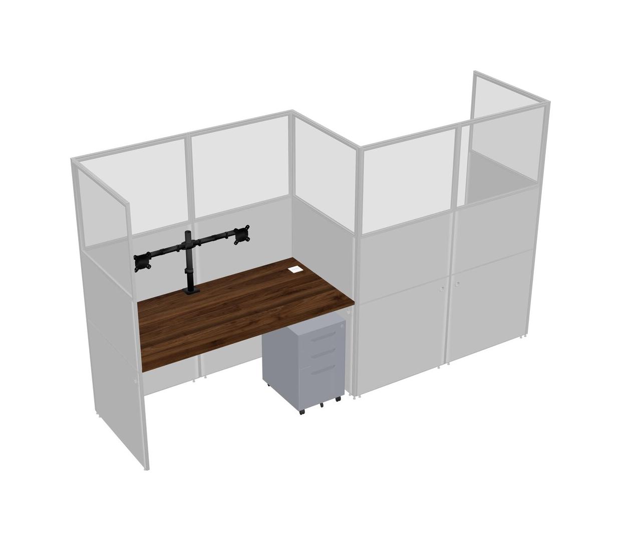 Columbia Walnut Rectangular Cubicle Workstations For 2 - Zigzag Formation + Grey Metal Mobile Drawers