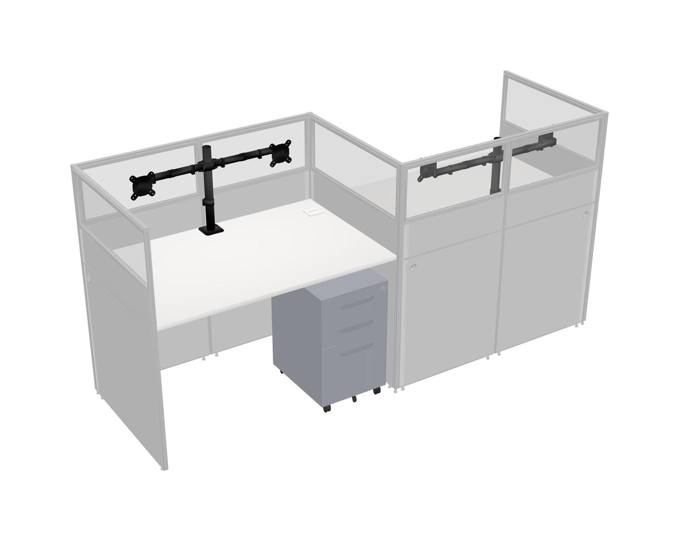 White Rectangular Cubicle Workstations For 2 - Zigzag Formation + Grey Metal Mobile Drawers
