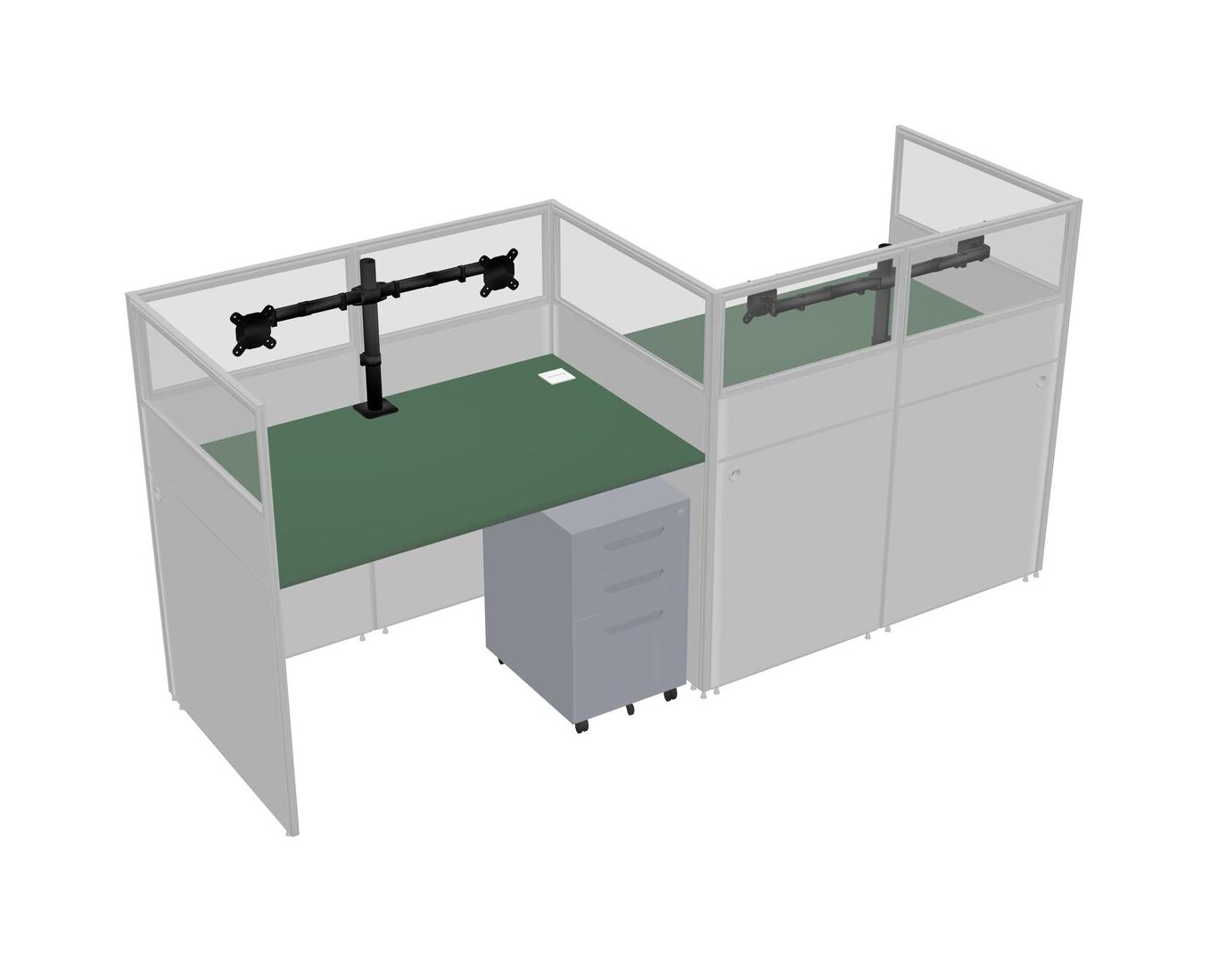 Green Rectangular Cubicle Workstations For 2 - Zigzag Formation + Grey Metal Mobile Drawers