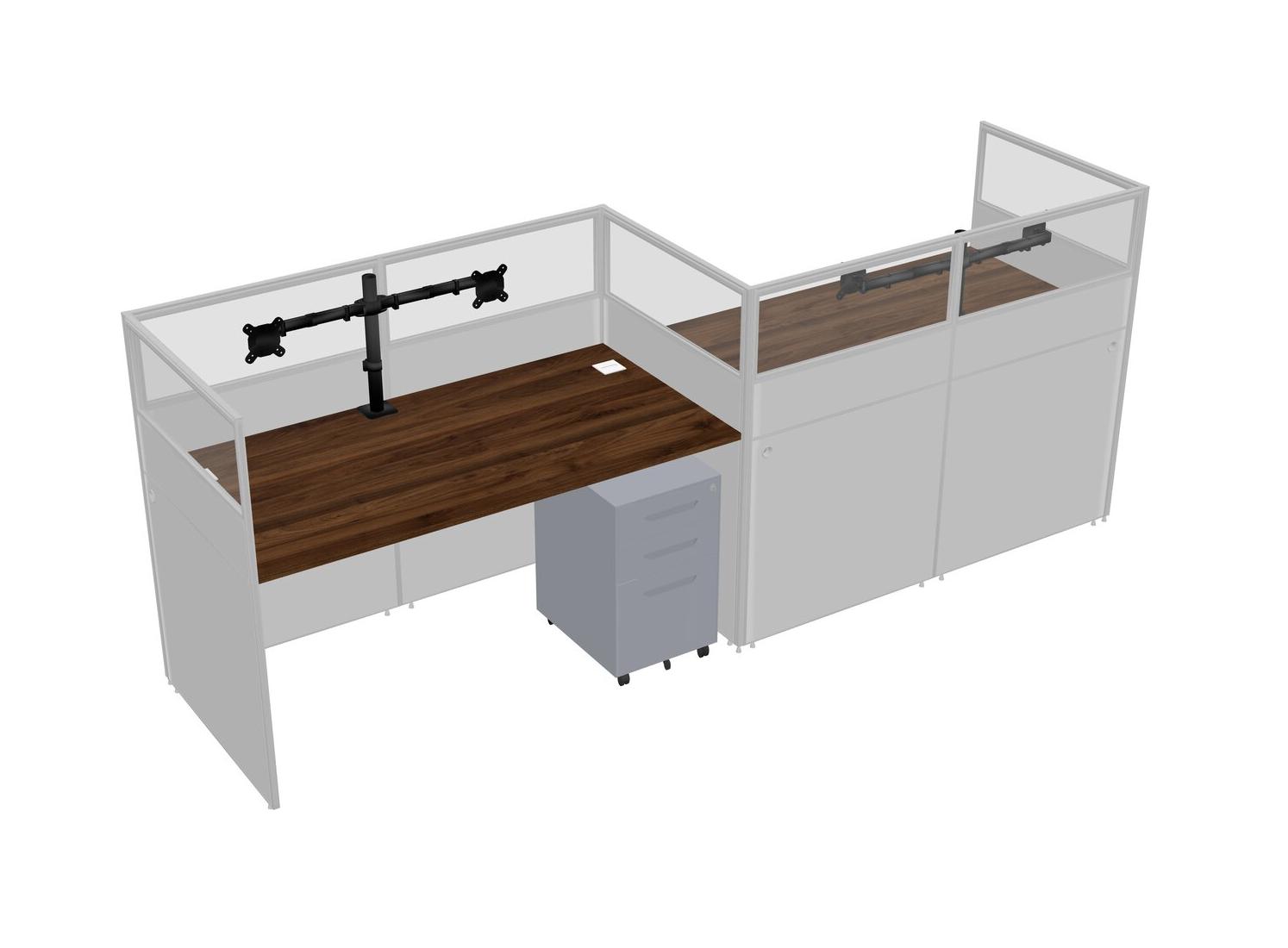 Columbia Walnut Rectangular Cubicle Workstations For 2 - Zigzag Formation + Grey Metal Mobile Drawers