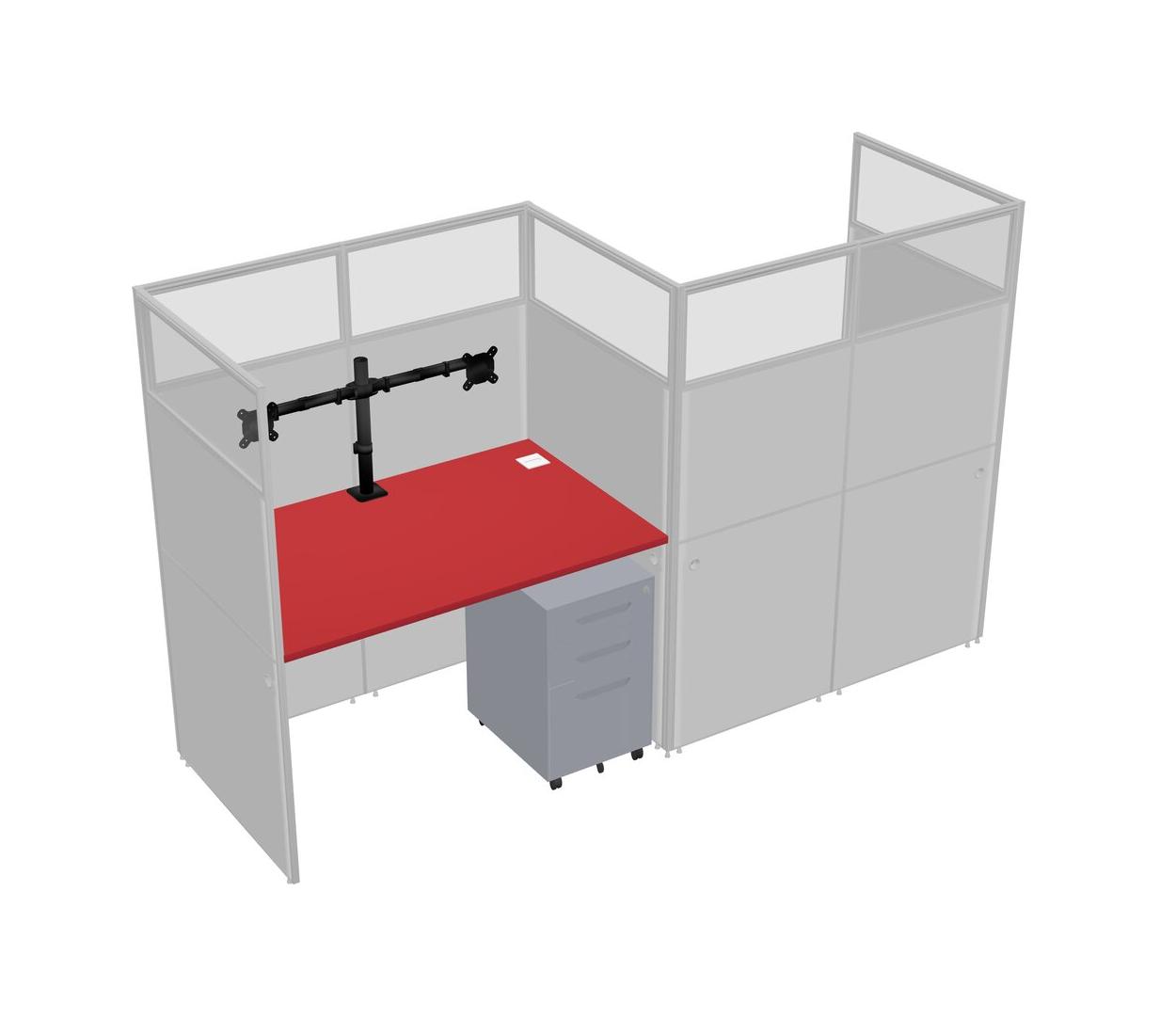 Prism Red Rectangular Cubicle Workstations For 2 - Zigzag Formation + Grey Metal Mobile Drawers