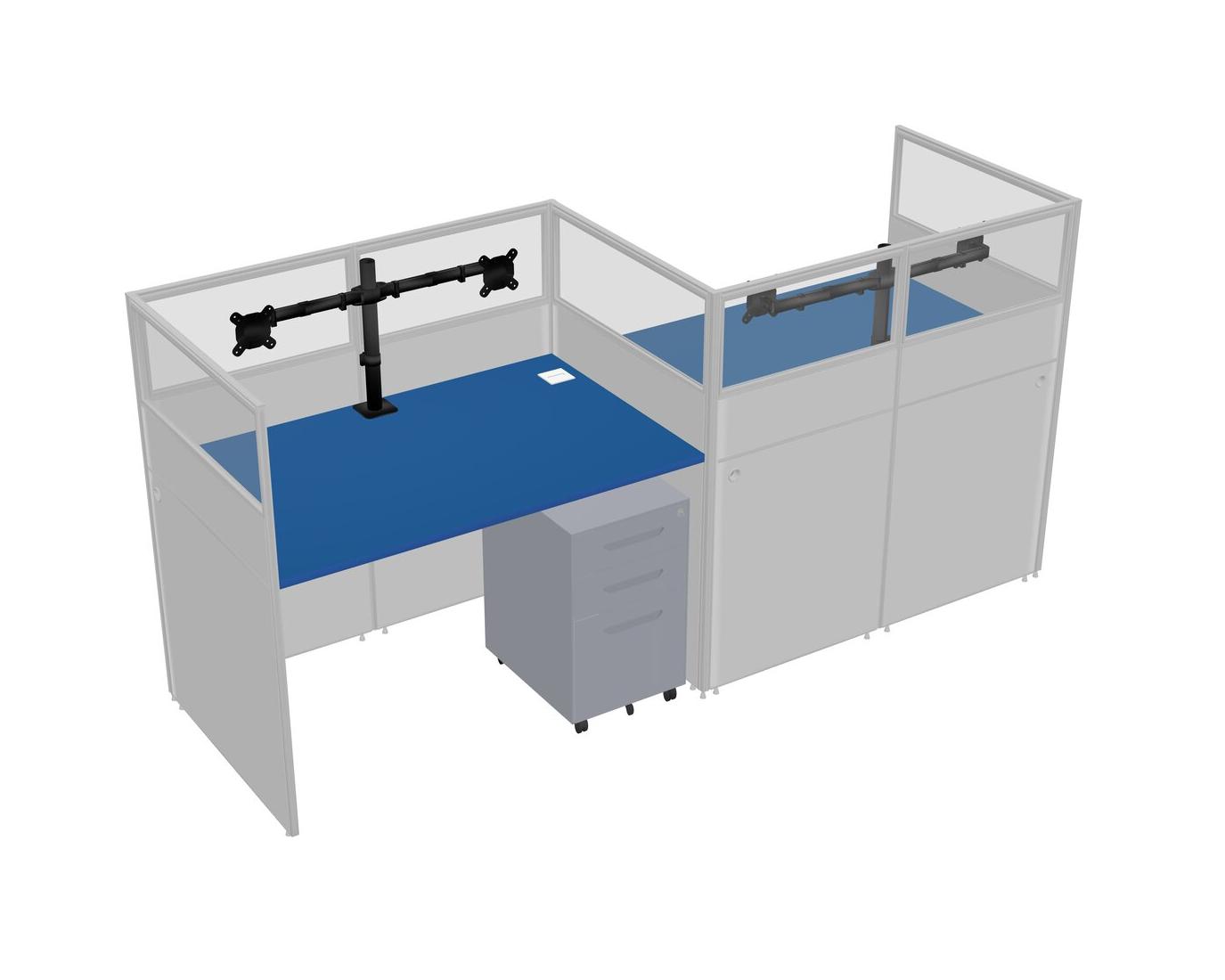 Prism Blue Rectangular Cubicle Workstations For 2 - Zigzag Formation + Grey Metal Mobile Drawers