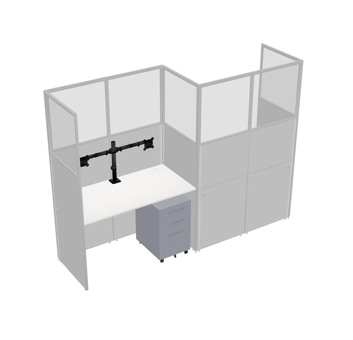 White Rectangular Cubicle Workstations For 2 - Zigzag Formation + Grey Metal Mobile Drawers