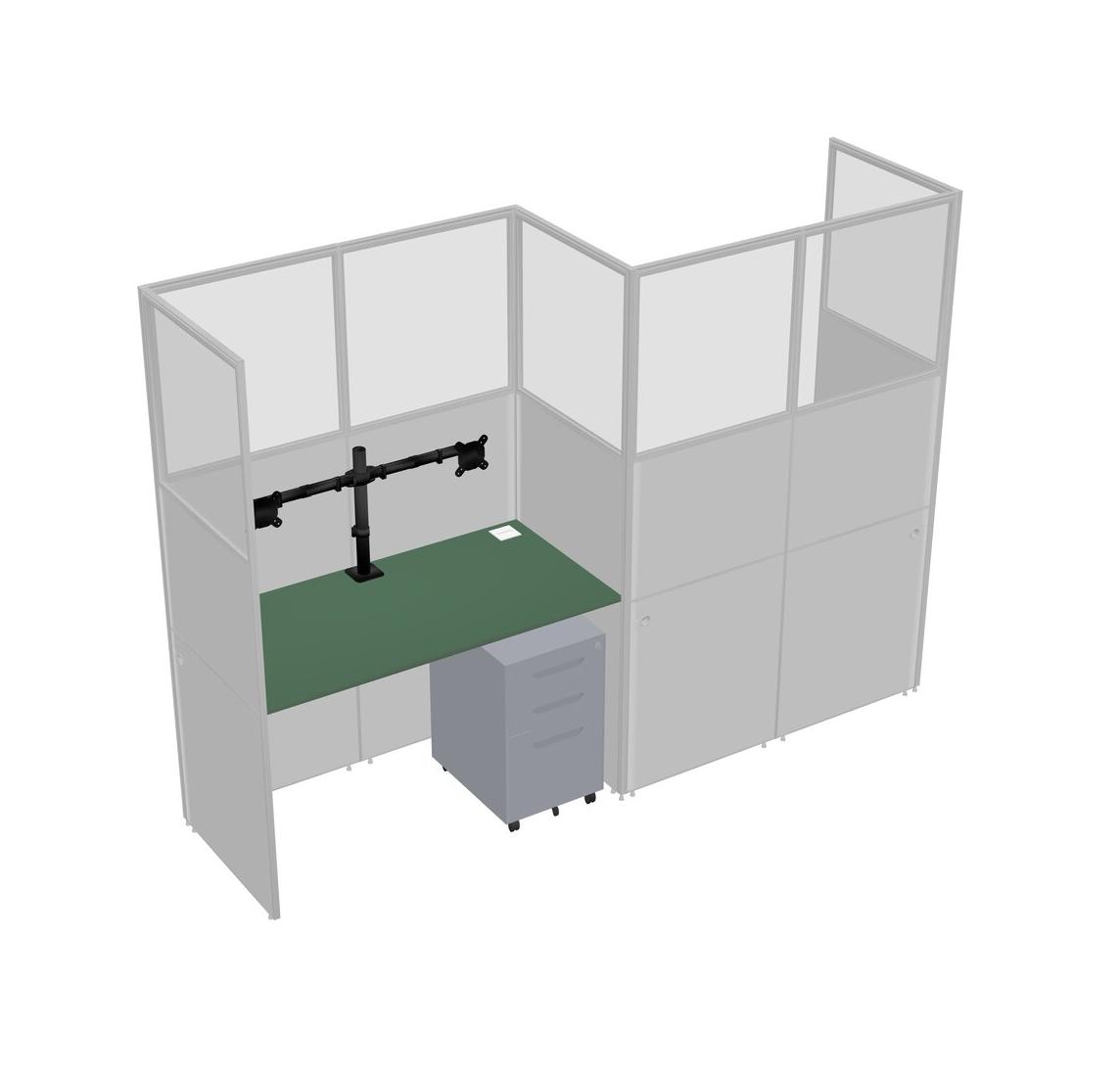 Green Rectangular Cubicle Workstations For 2 - Zigzag Formation + Grey Metal Mobile Drawers