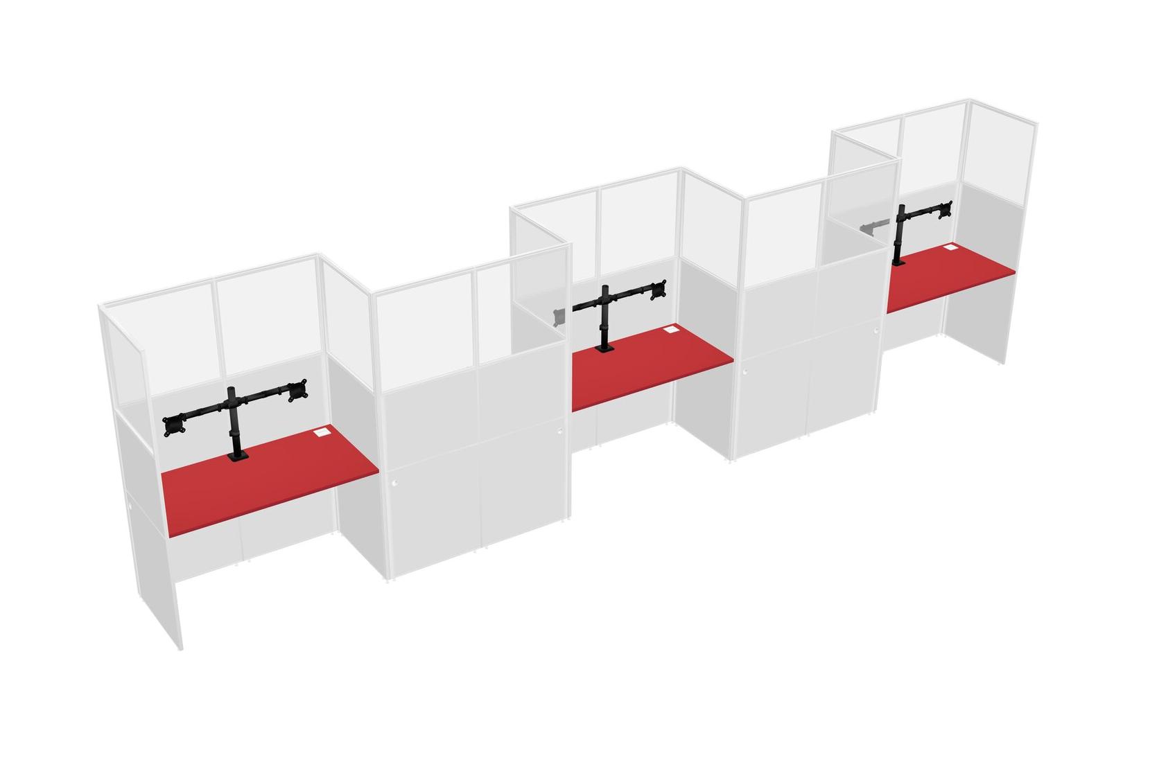 Prism Red Rectangular Cubicle Workstations For 5 - Zigzag Formation