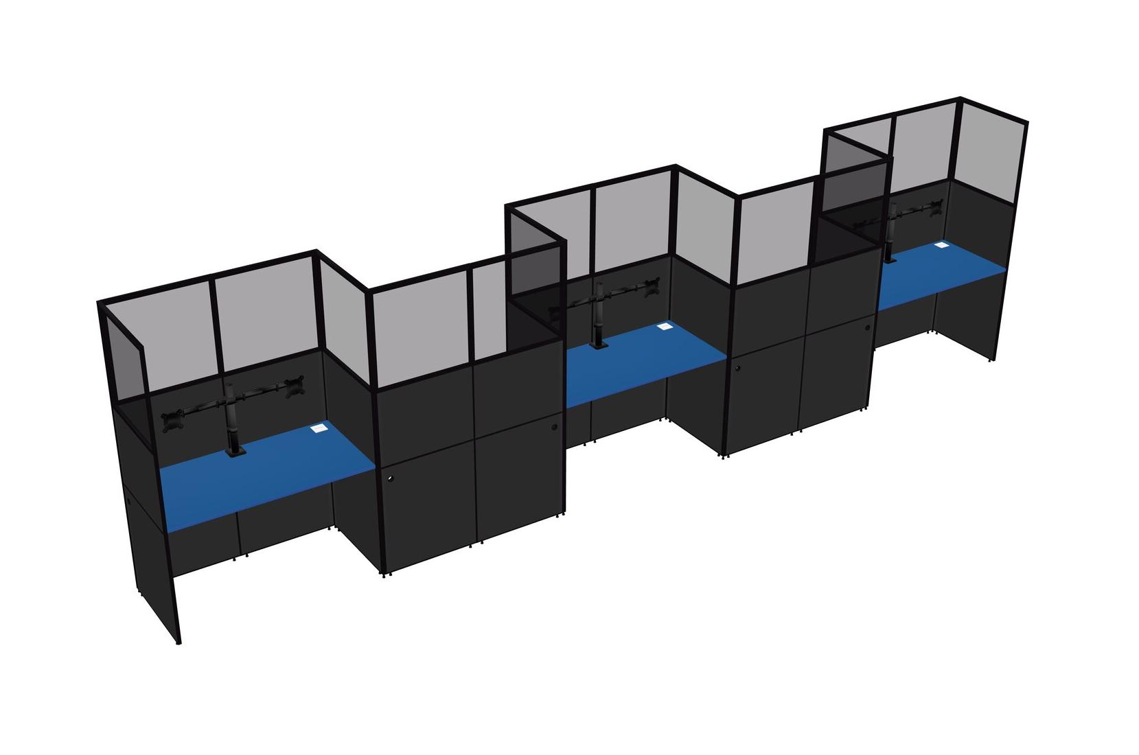 Prism Blue Rectangular Cubicle Workstations For 5 - Zigzag Formation