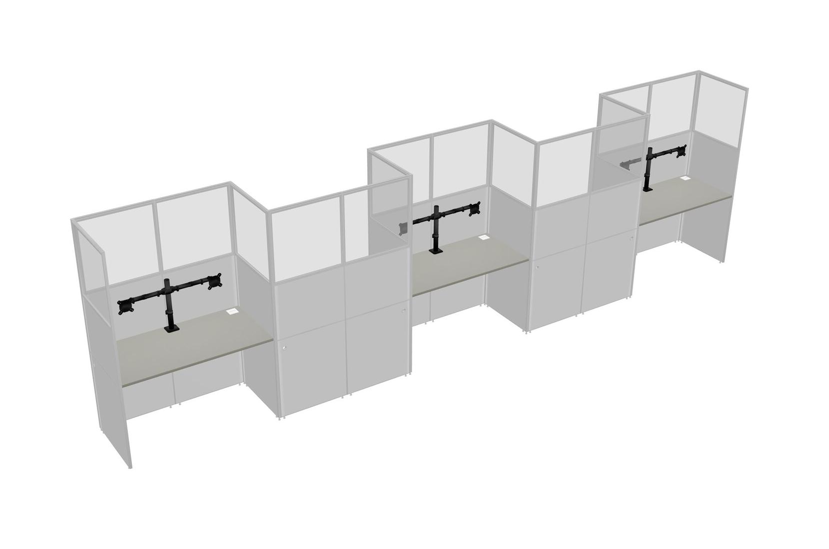 Grey Shadows Rectangular Cubicle Workstations For 5 - Zigzag Formation