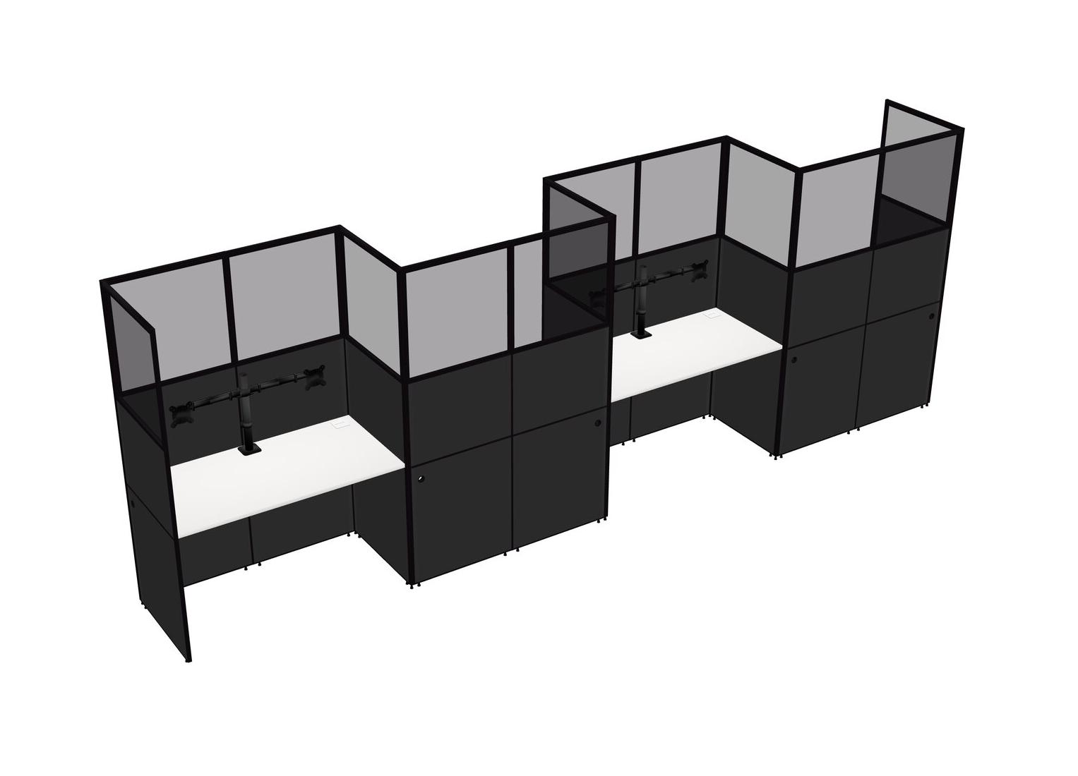White Rectangular Cubicle Workstations For 4 - Zigzag Formation