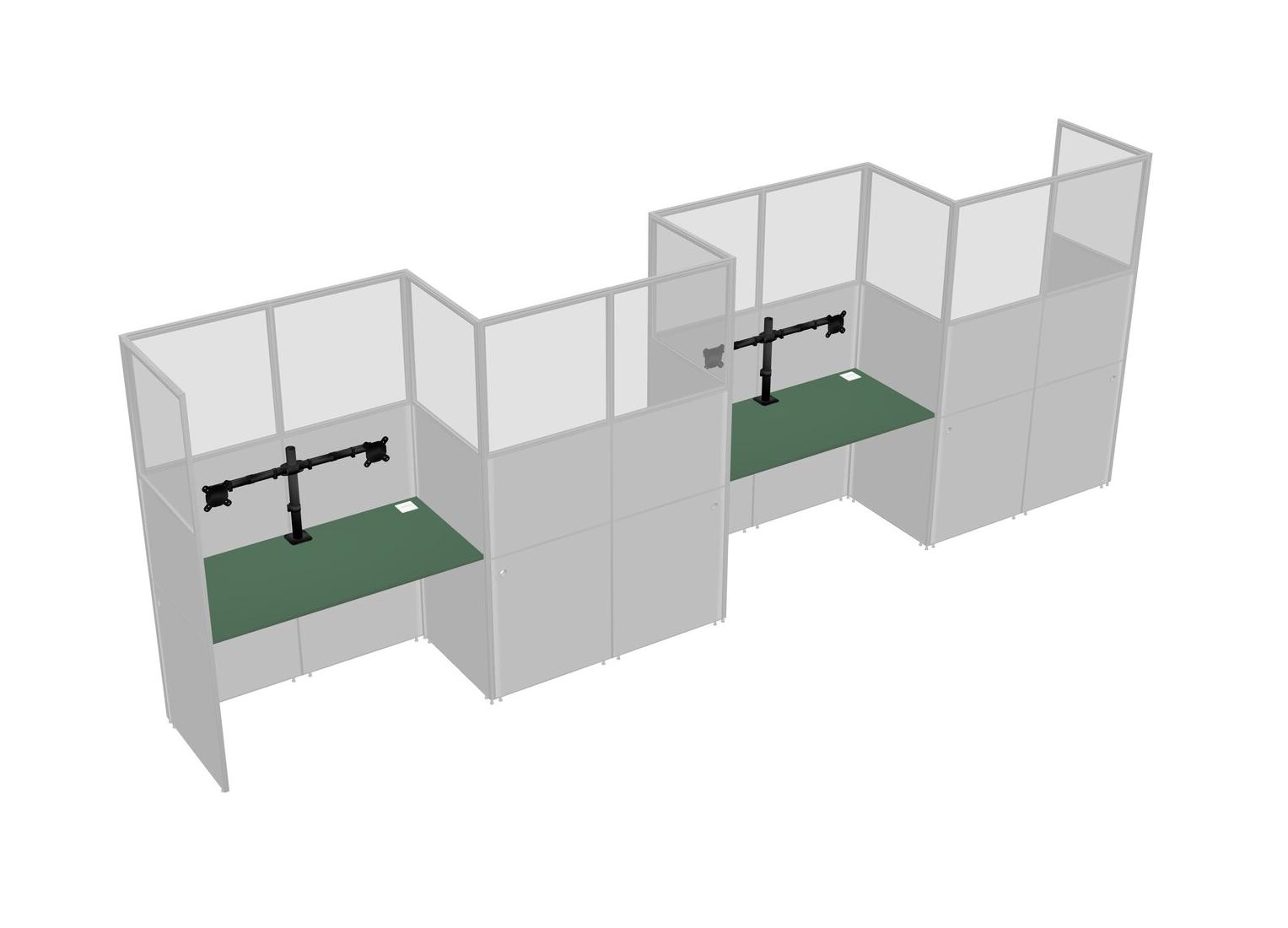 Green Rectangular Cubicle Workstations For 4 - Zigzag Formation