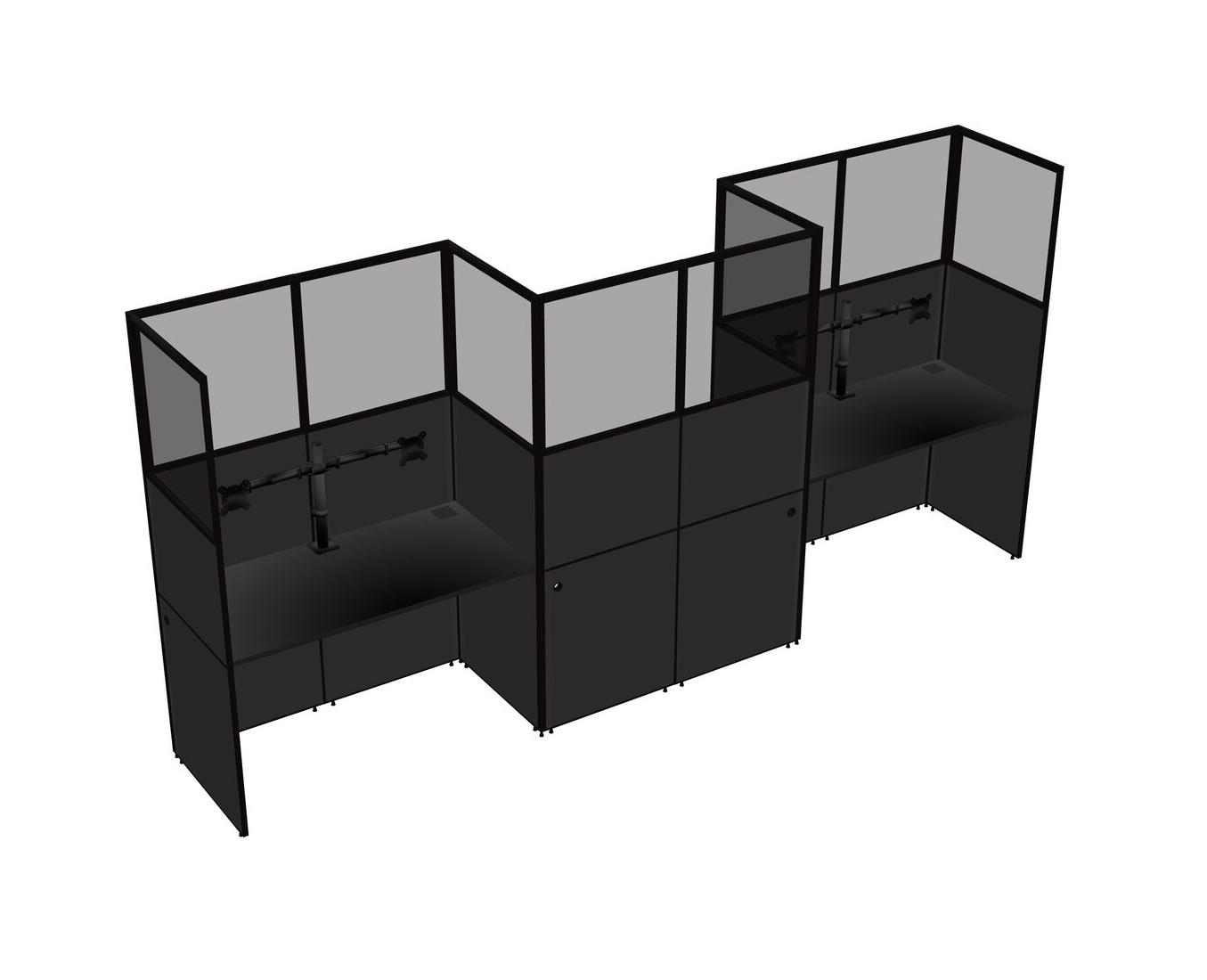 Black Rectangular Cubicle Workstations For 3 - Zigzag Formation