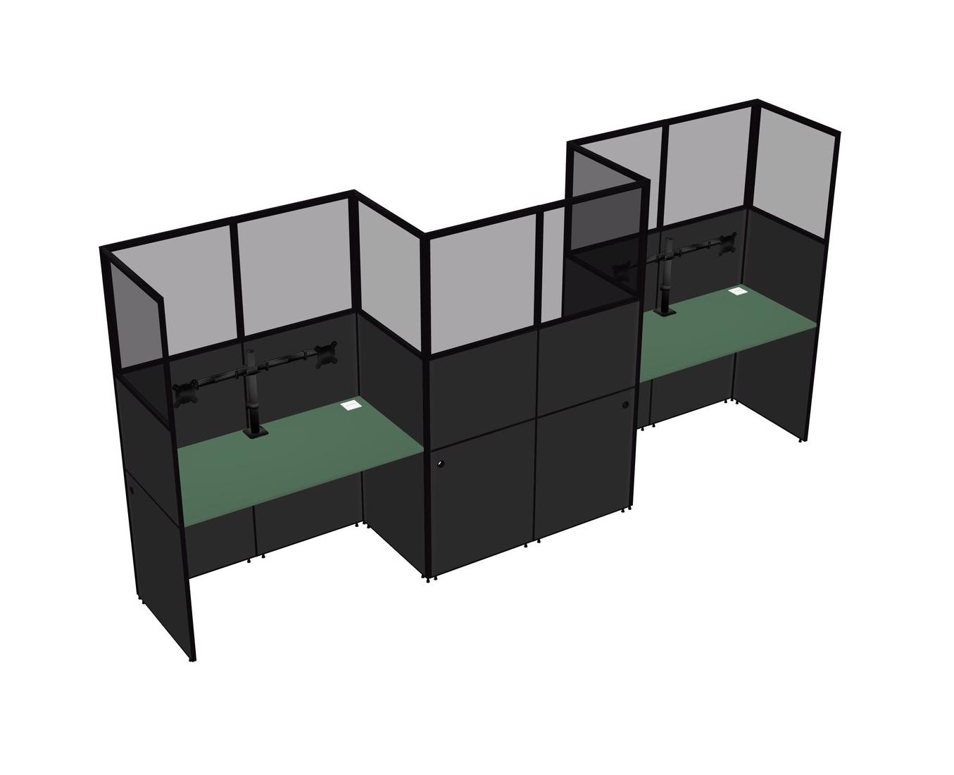 Green Rectangular Cubicle Workstations For 3 - Zigzag Formation
