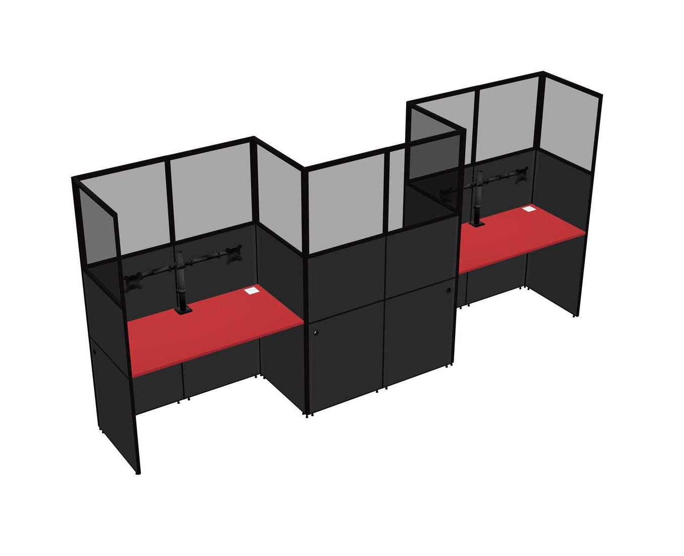 Prism Red Rectangular Cubicle Workstations For 3 - Zigzag Formation
