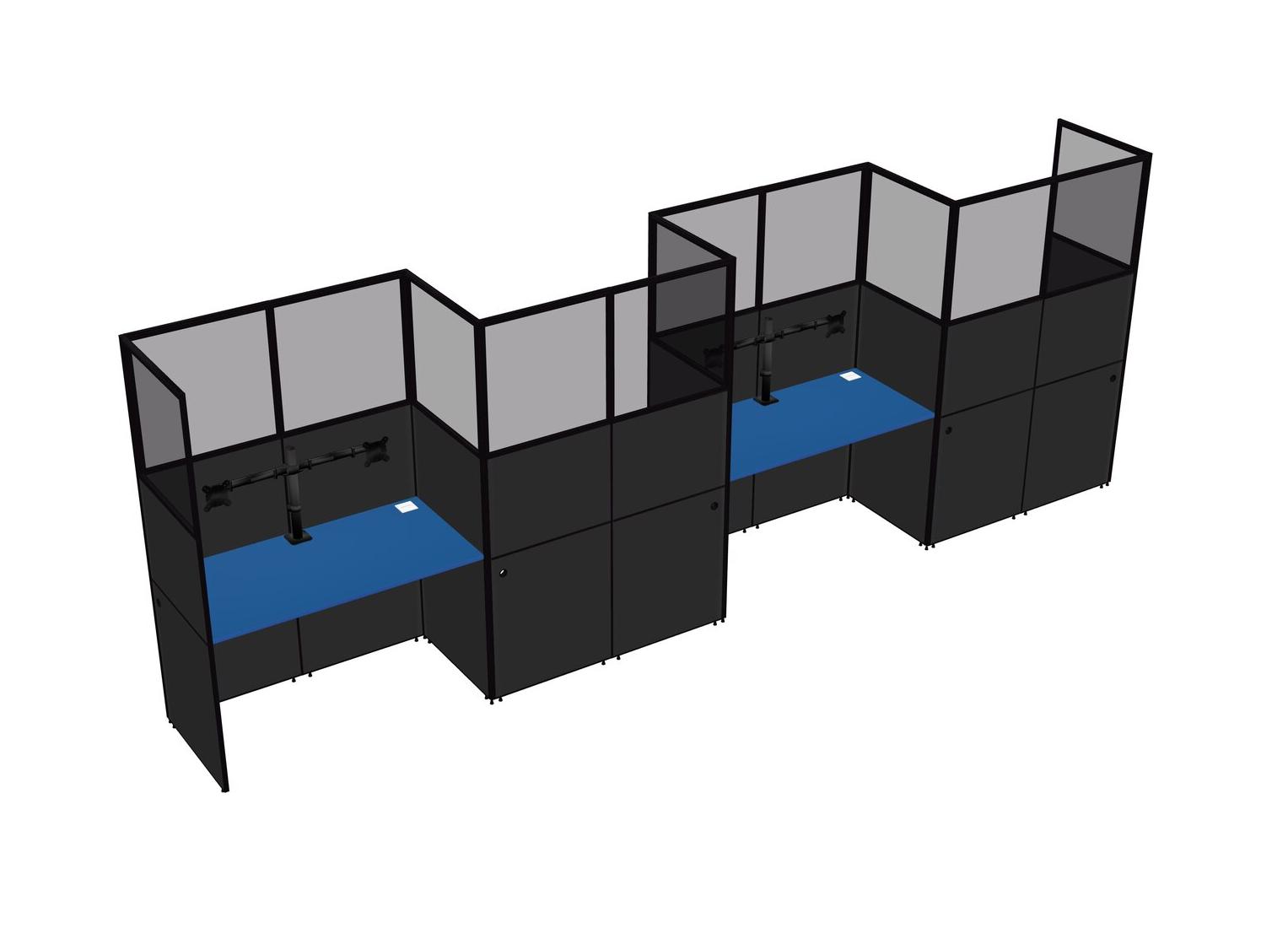 Prism Blue Rectangular Cubicle Workstations For 4 - Zigzag Formation