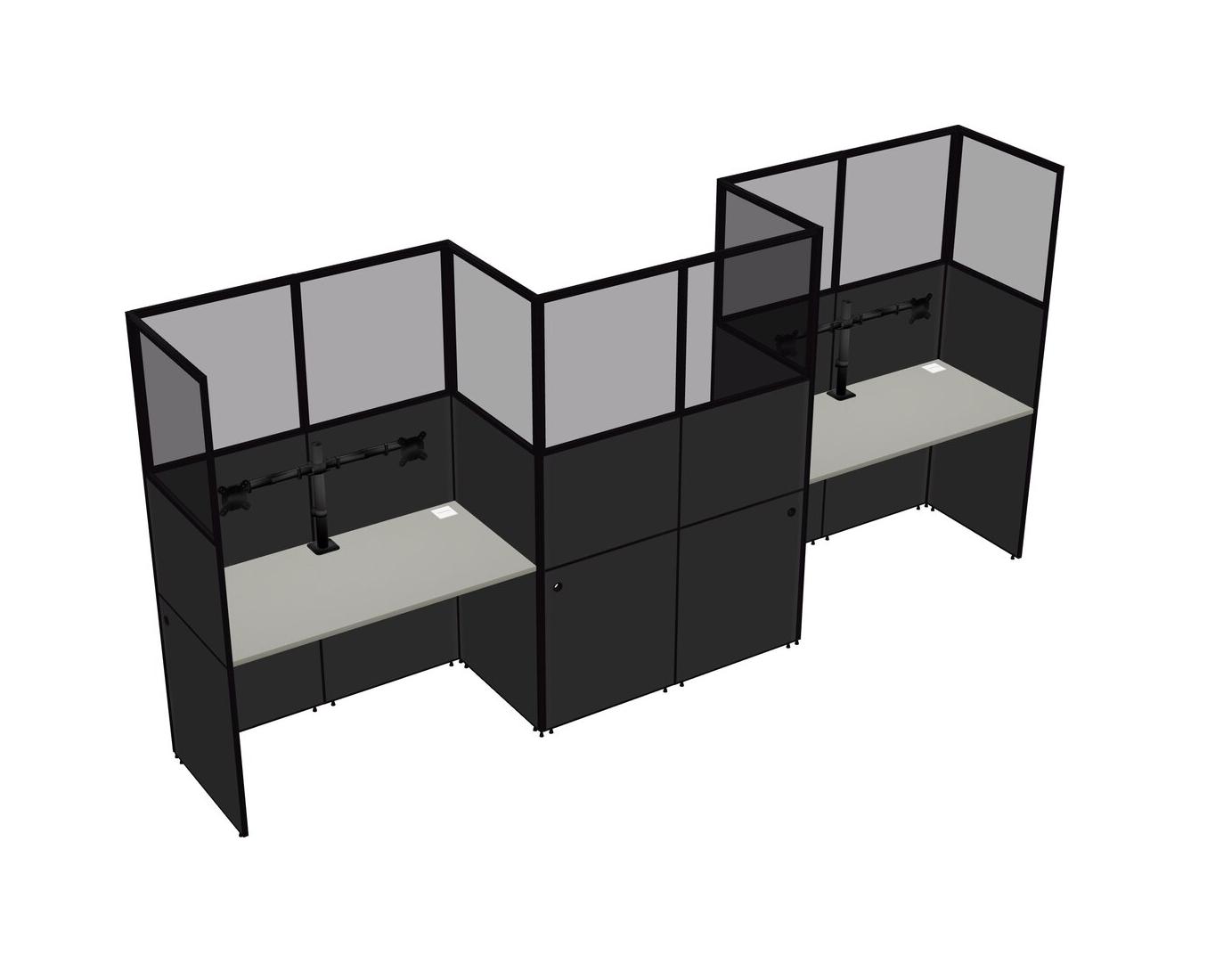 Grey Shadows Rectangular Cubicle Workstations For 3 - Zigzag Formation