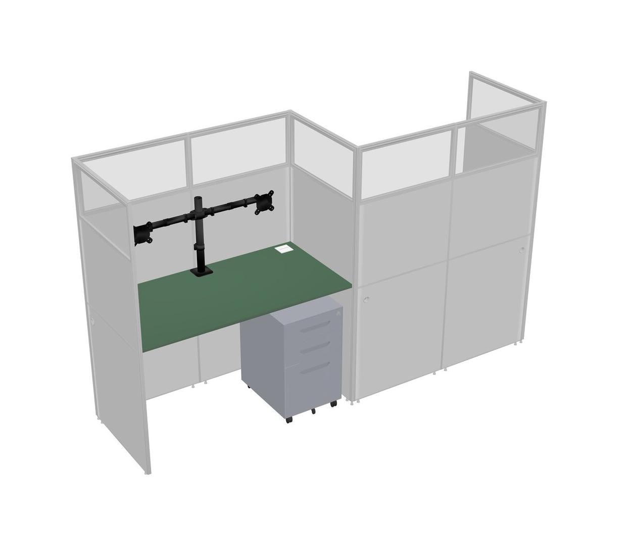 Green Rectangular Cubicle Workstations For 2 - Zigzag Formation + Grey Metal Mobile Drawers