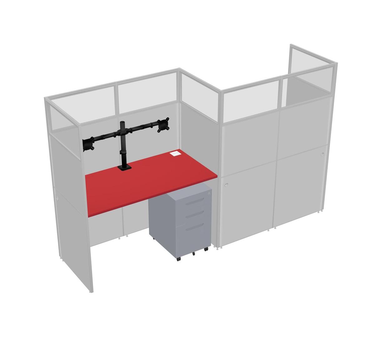 Prism Red Rectangular Cubicle Workstations For 2 - Zigzag Formation + Grey Metal Mobile Drawers