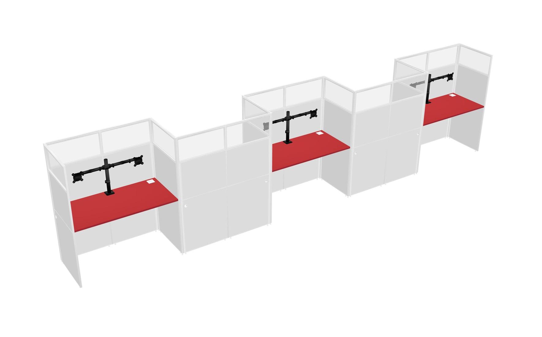 Prism Red Rectangular Cubicle Workstations For 5 - Zigzag Formation