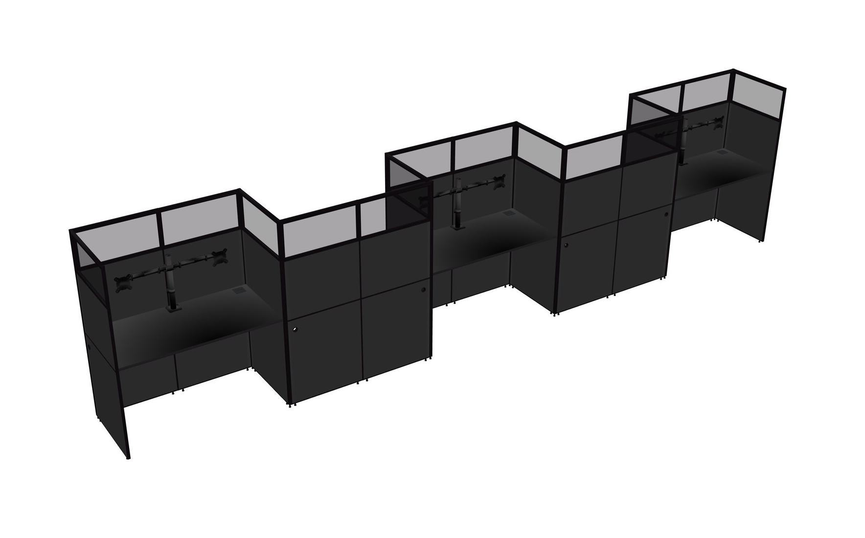 Black Rectangular Cubicle Workstations For 5 - Zigzag Formation