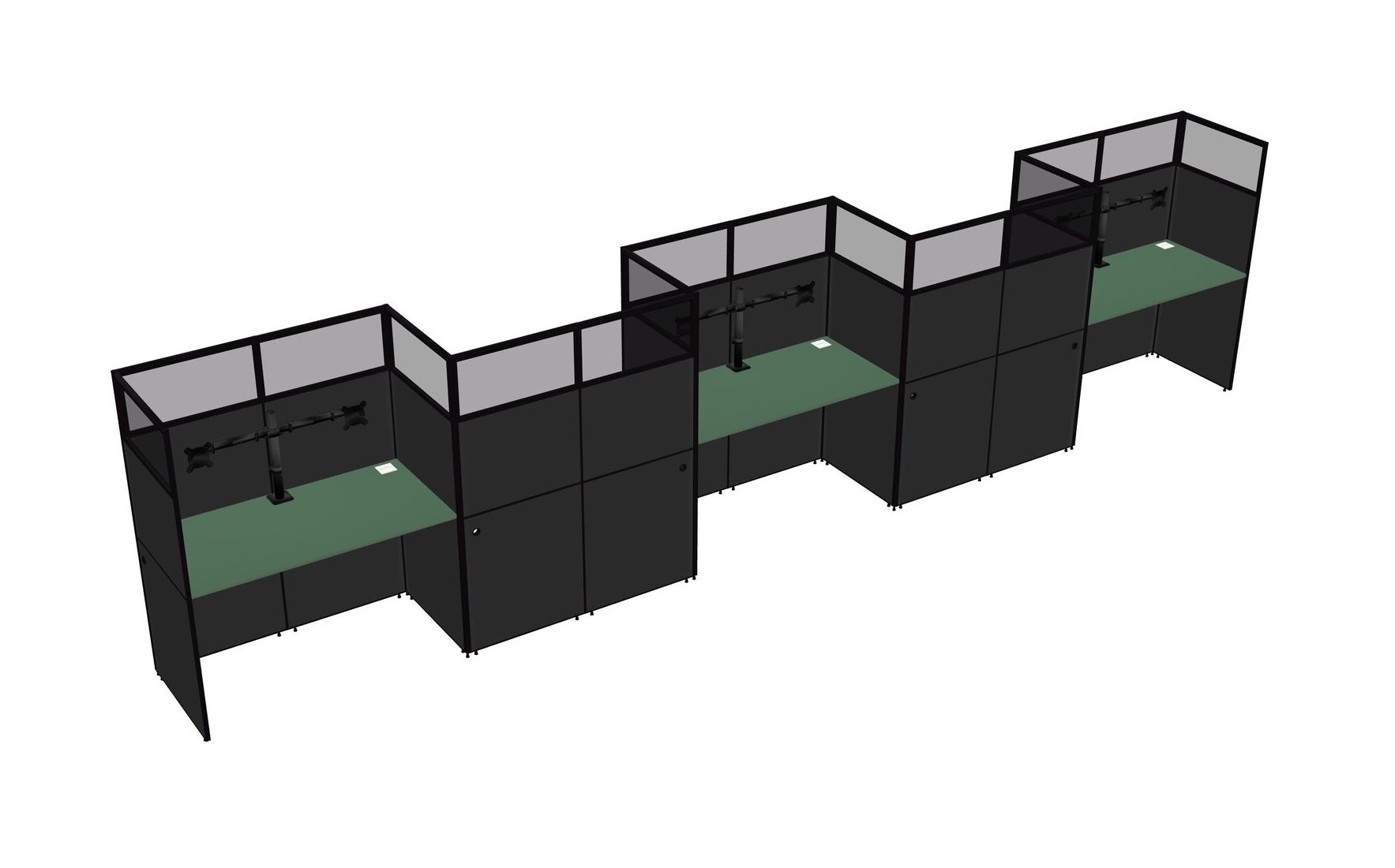 Green Rectangular Cubicle Workstations For 5 - Zigzag Formation