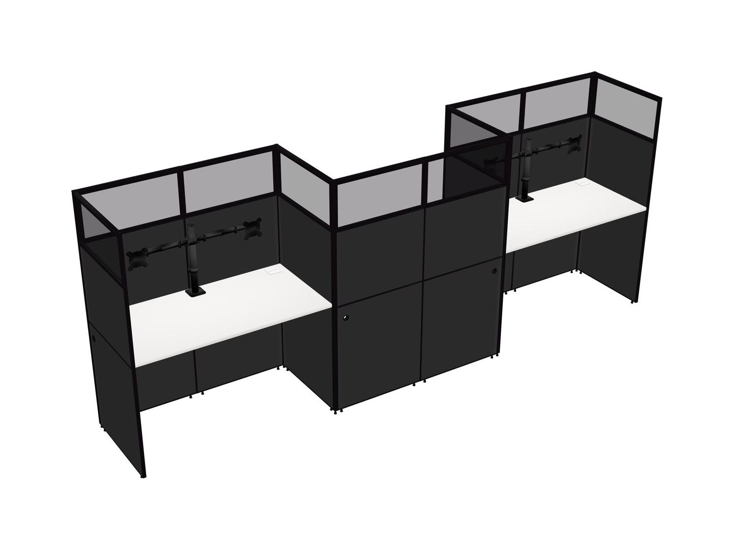 White Rectangular Cubicle Workstations For 3 - Zigzag Formation