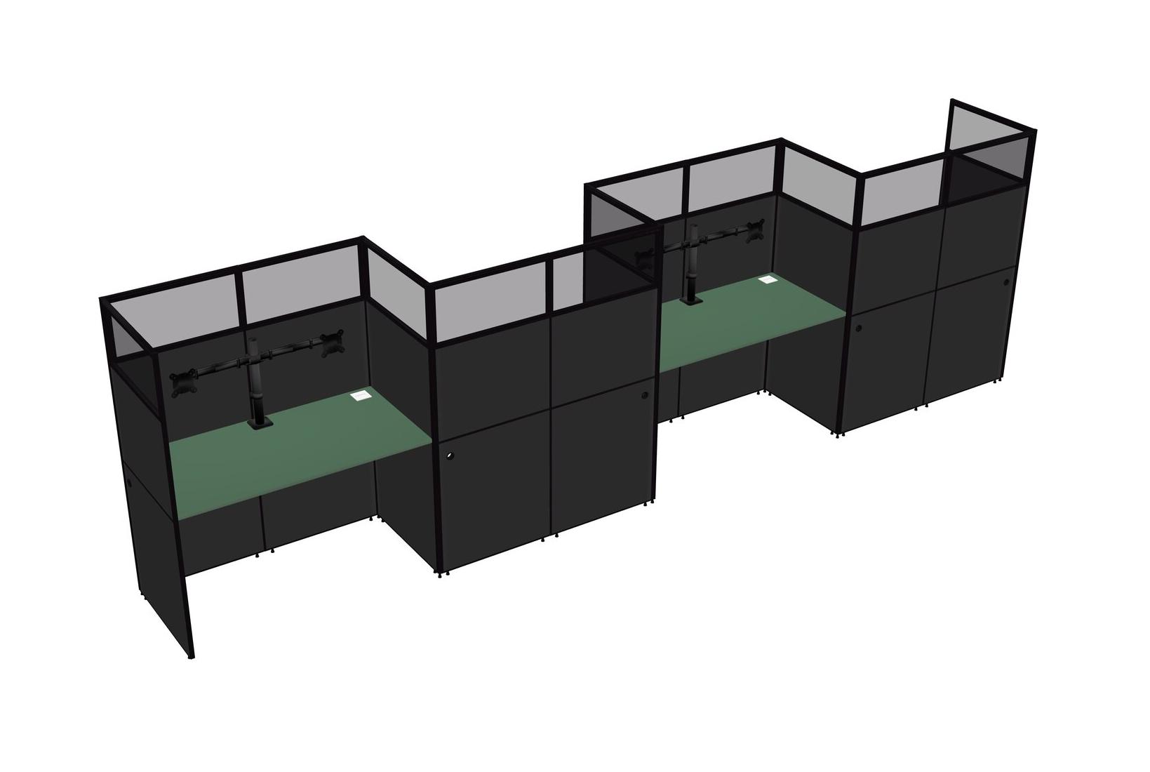 Green Rectangular Cubicle Workstations For 4 - Zigzag Formation