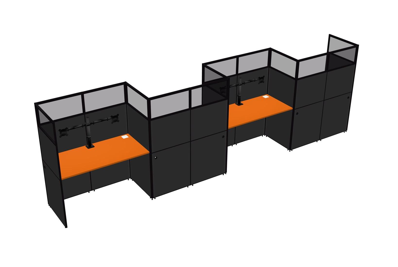 Orange Rectangular Cubicle Workstations For 4 - Zigzag Formation