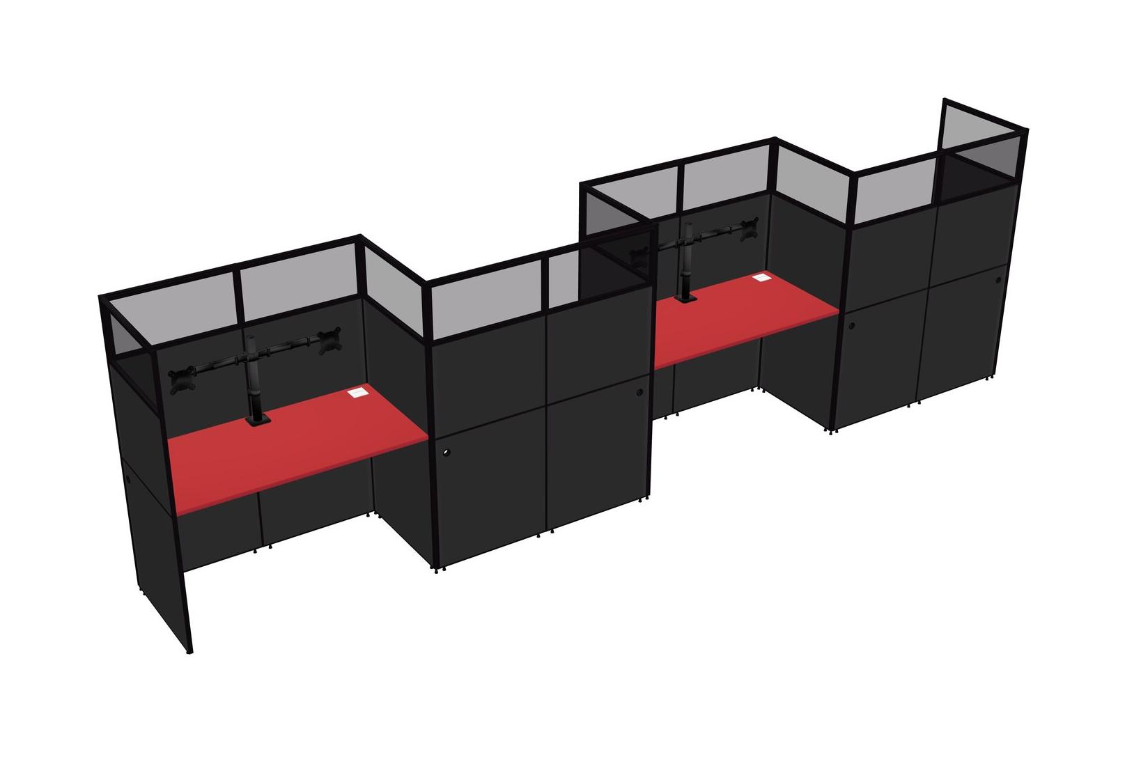 Prism Red Rectangular Cubicle Workstations For 4 - Zigzag Formation