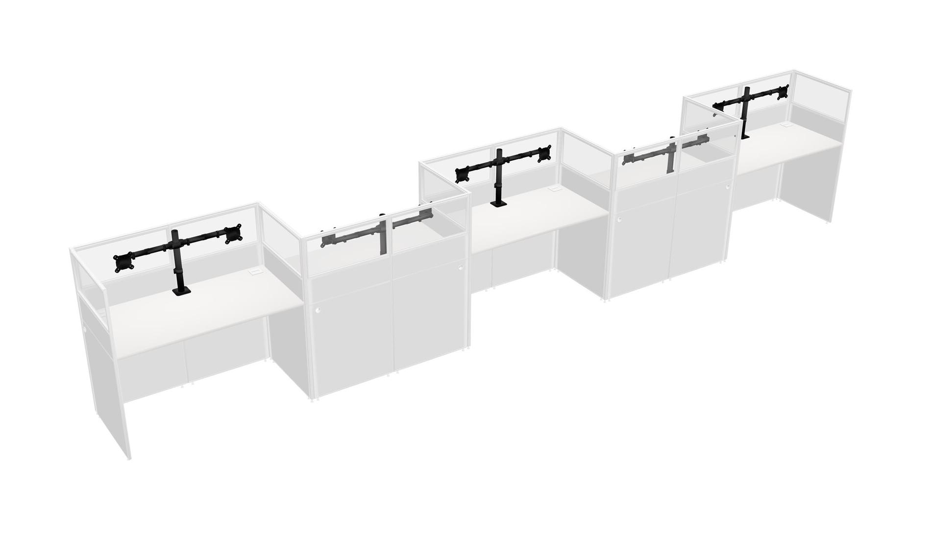 White Rectangular Cubicle Workstations For 5 - Zigzag Formation