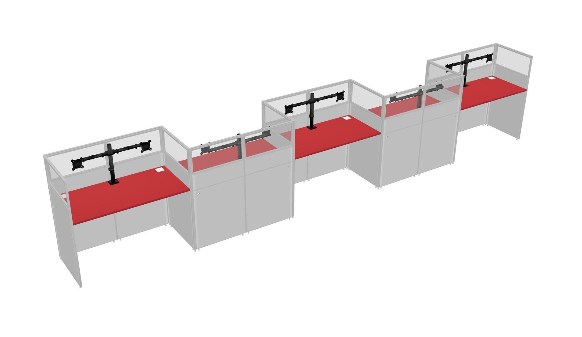 Prism Red Rectangular Cubicle Workstations For 5 - Zigzag Formation