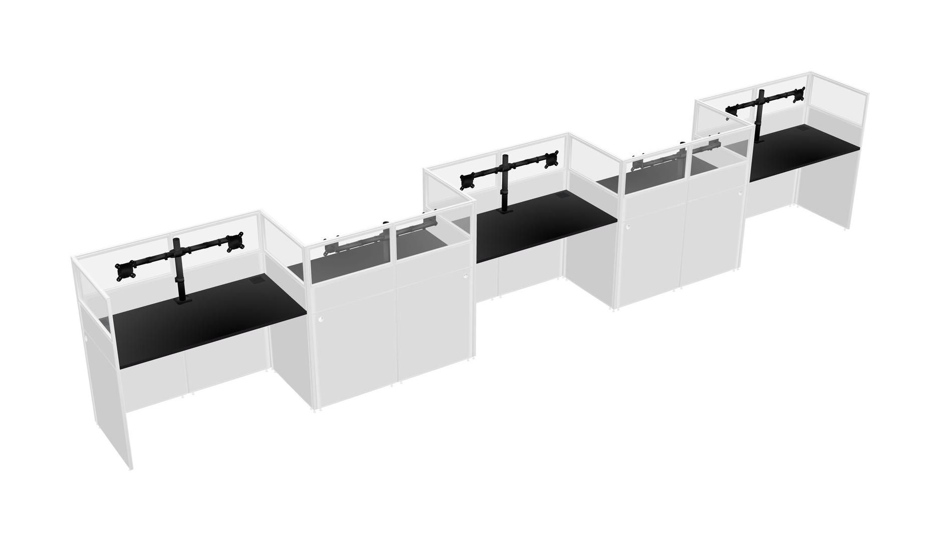 Black Rectangular Cubicle Workstations For 5 - Zigzag Formation