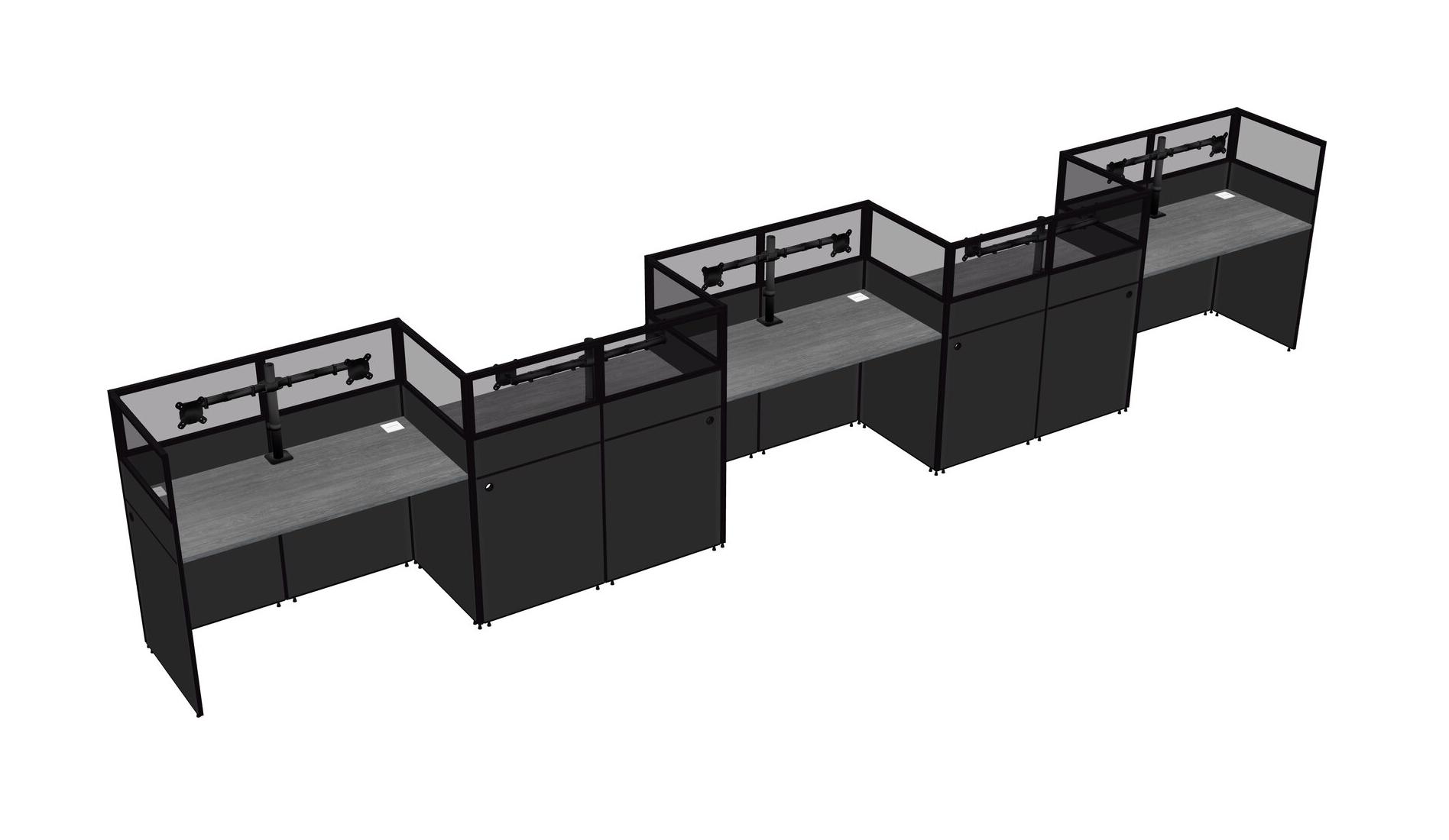 Grey Rectangular Cubicle Workstations For 5 - Zigzag Formation