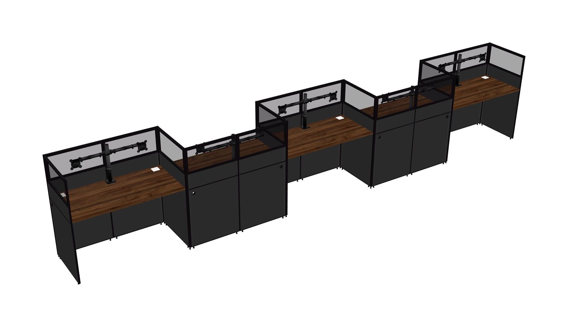 Columbia Walnut Rectangular Cubicle Workstations For 5 - Zigzag Formation