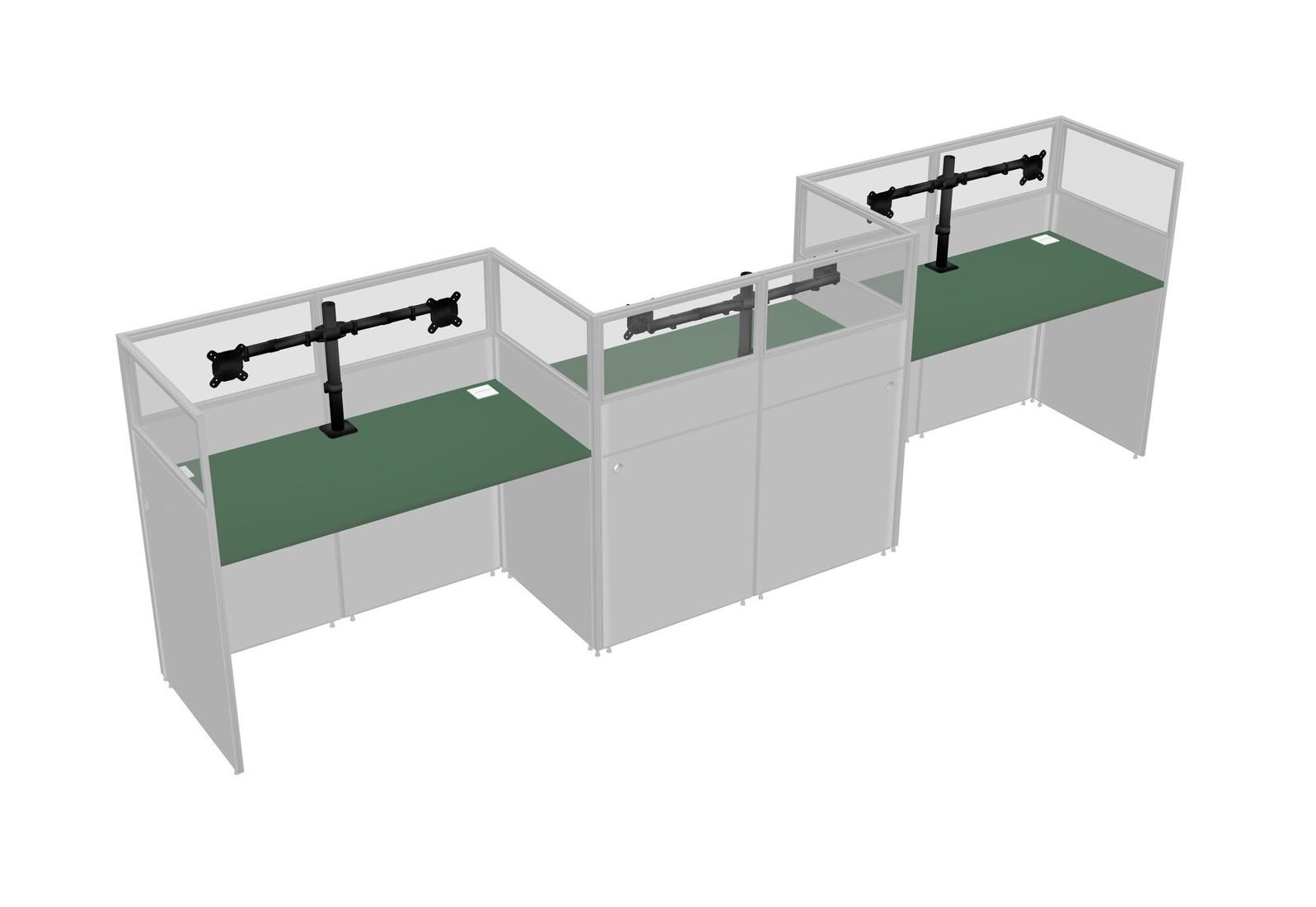 Green Rectangular Cubicle Workstations For 3 - Zigzag Formation