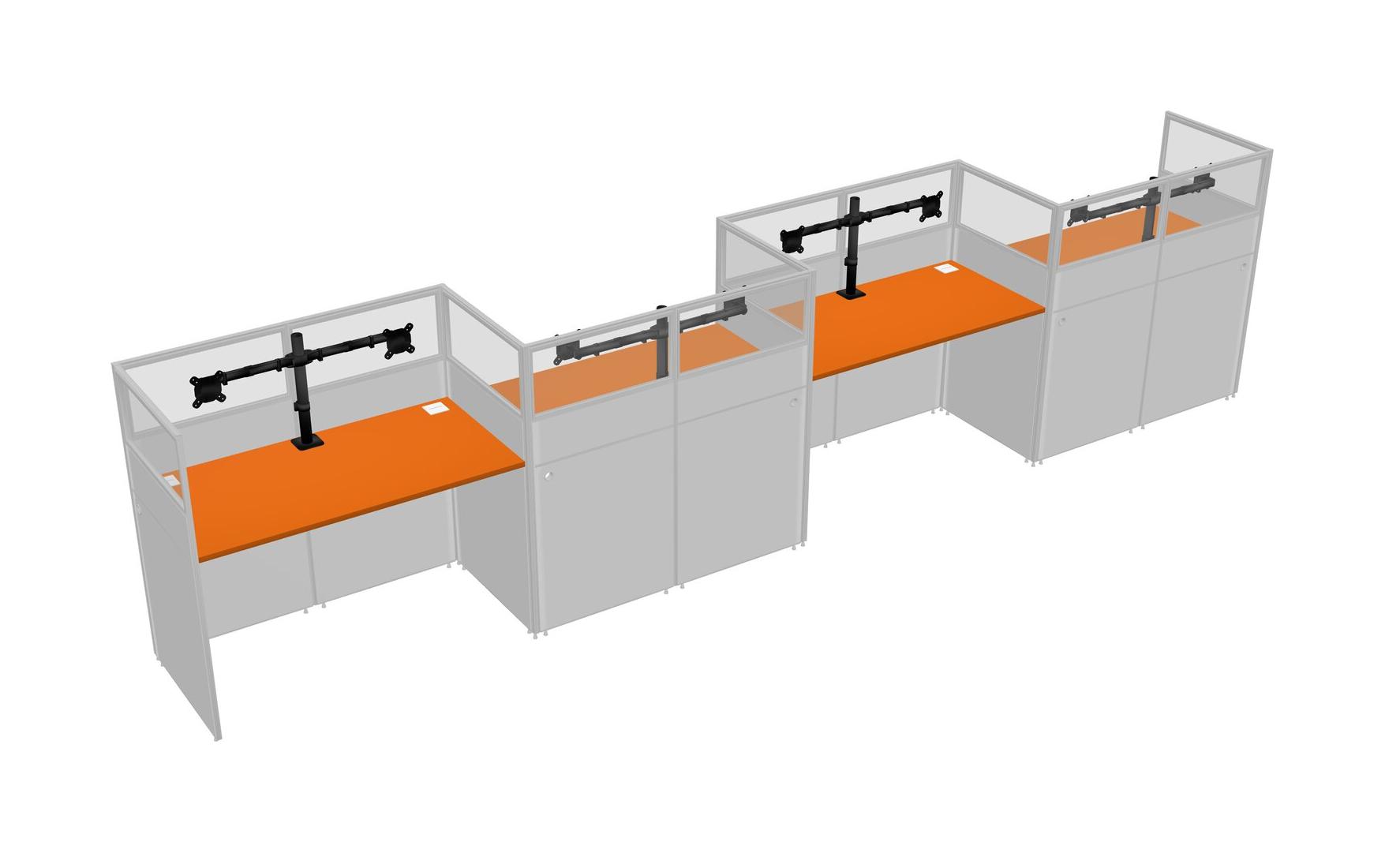 Orange Rectangular Cubicle Workstations For 4 - Zigzag Formation