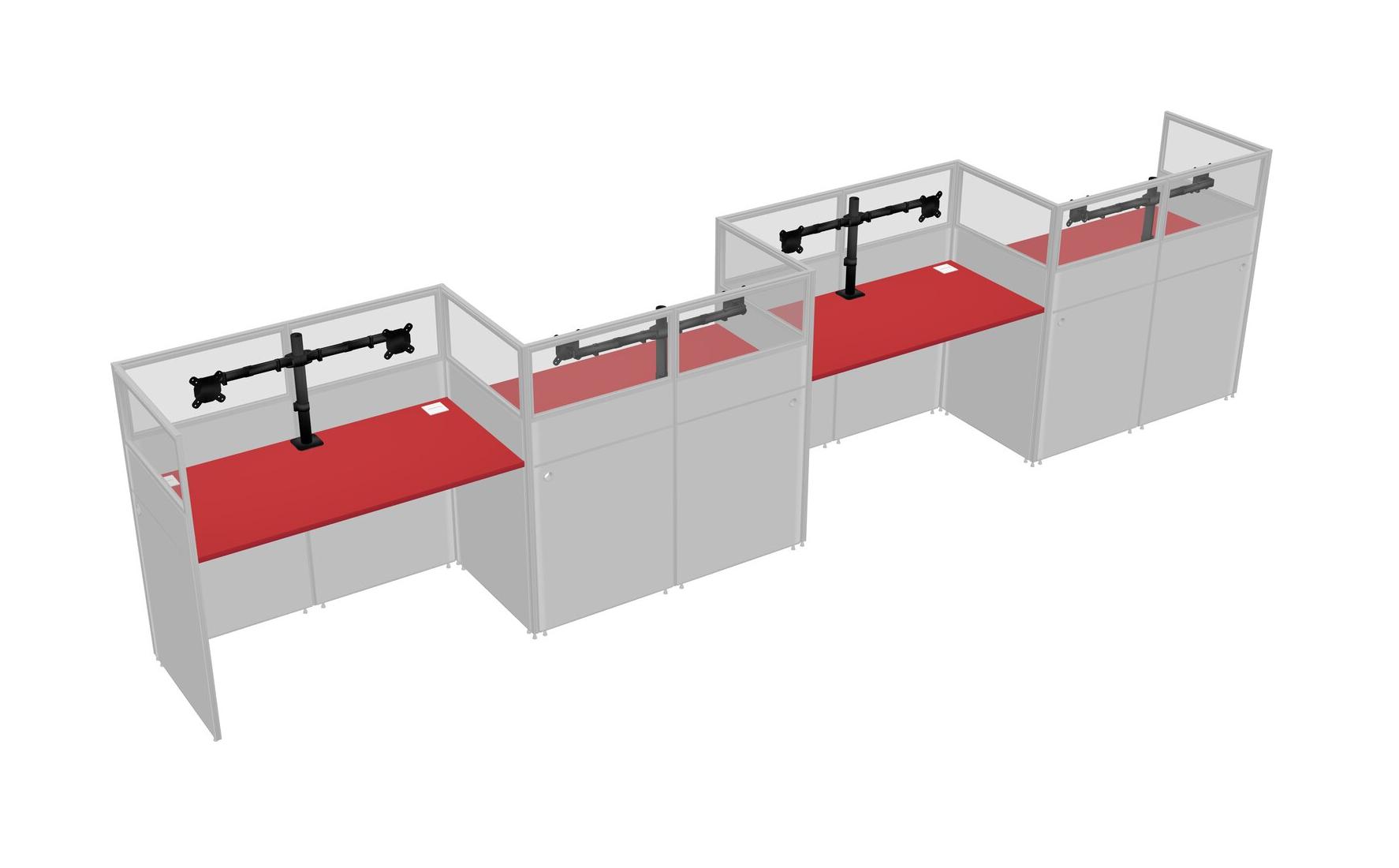 Prism Red Rectangular Cubicle Workstations For 4 - Zigzag Formation