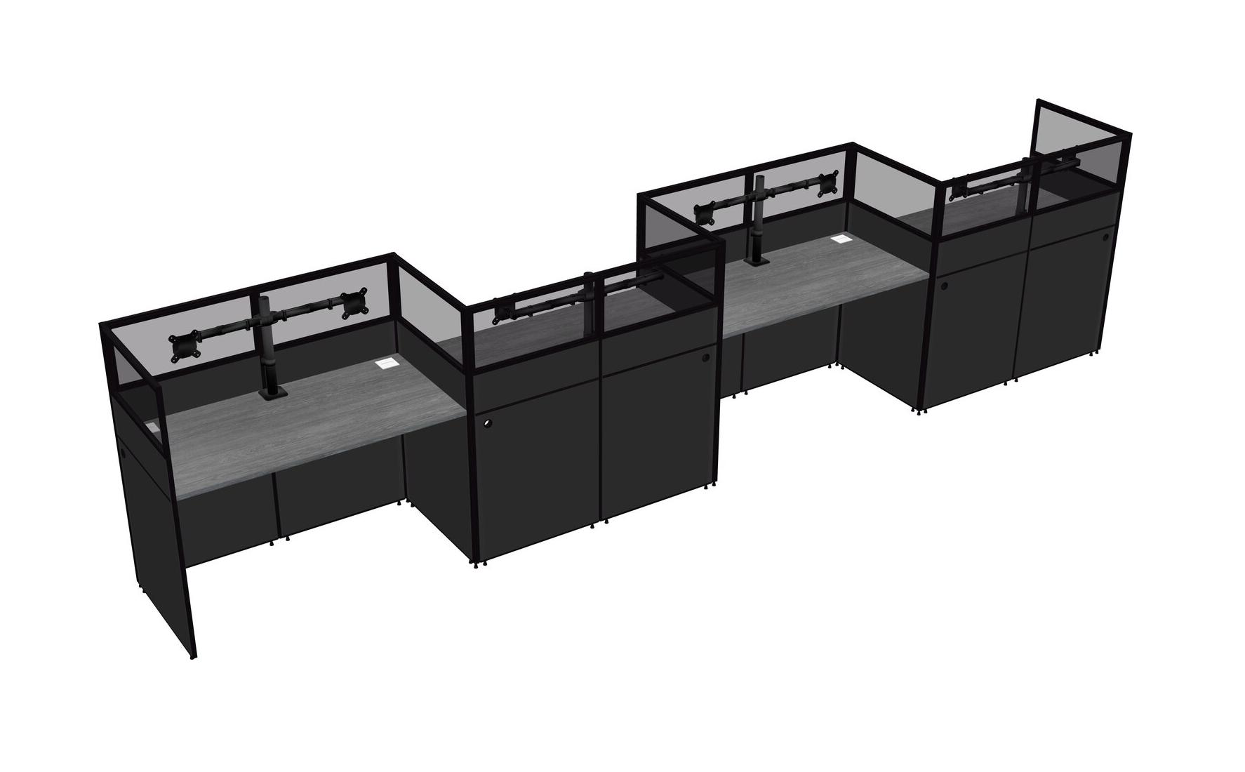 Grey Rectangular Cubicle Workstations For 4 - Zigzag Formation