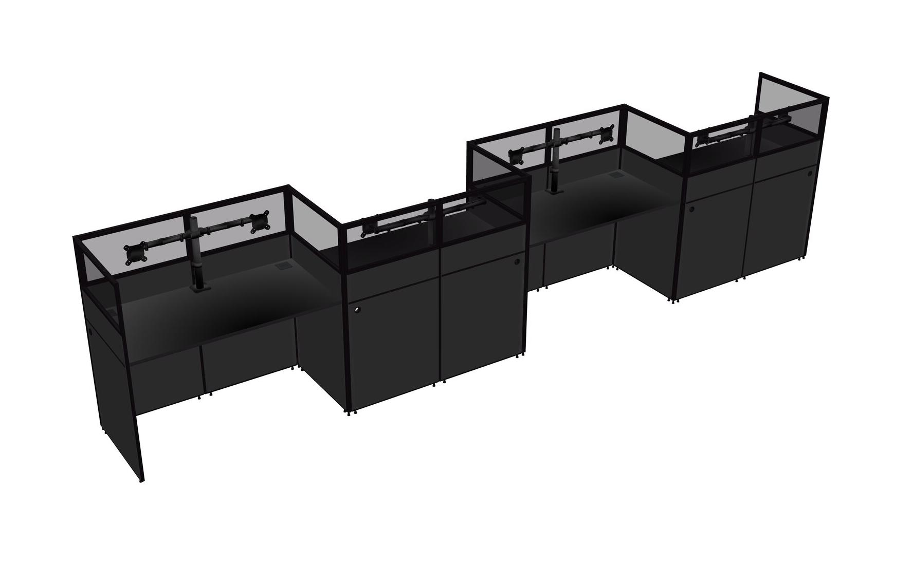 Black Rectangular Cubicle Workstations For 4 - Zigzag Formation
