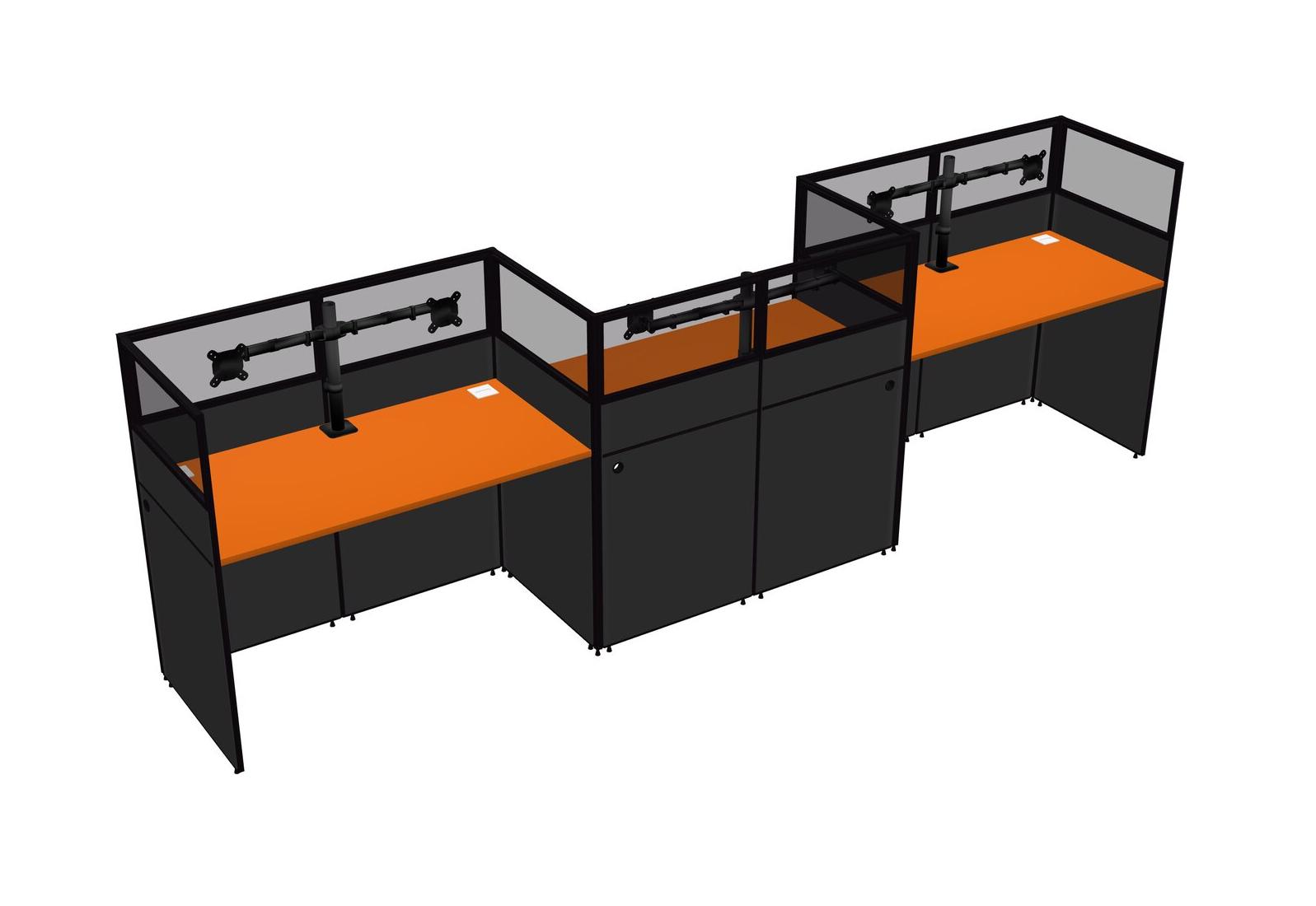 Orange Rectangular Cubicle Workstations For 3 - Zigzag Formation