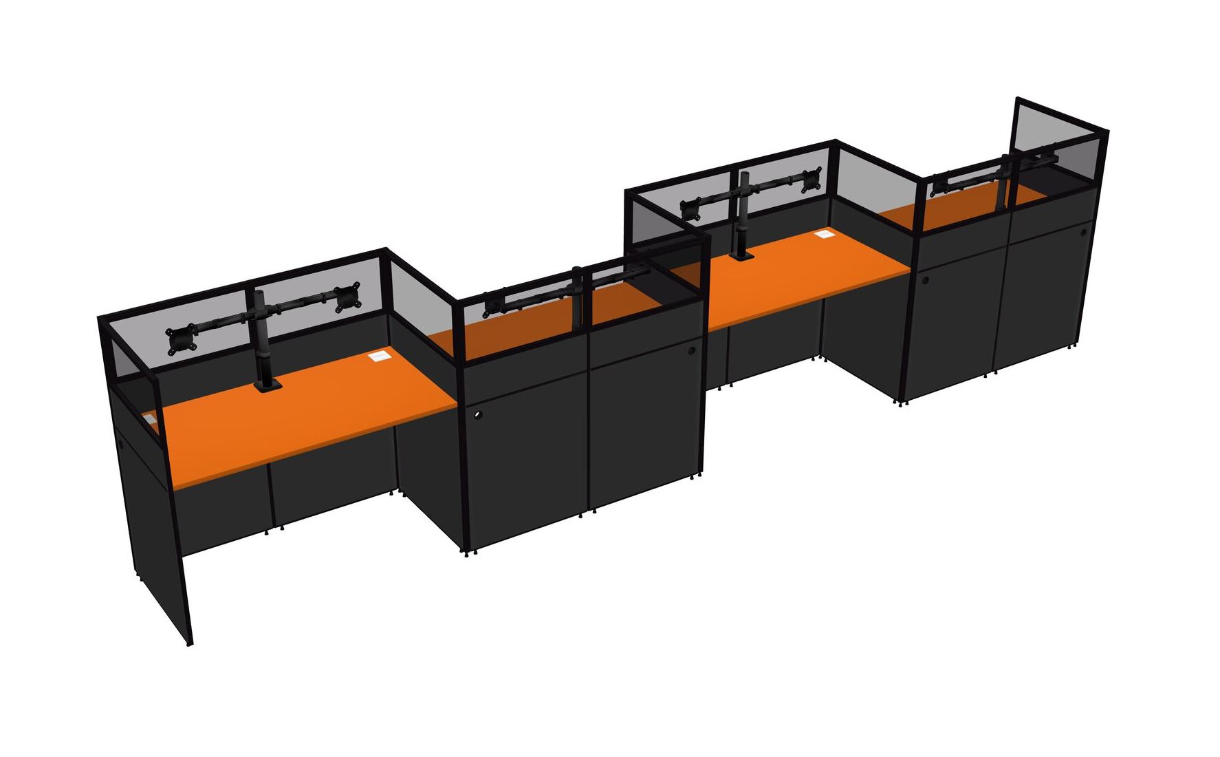 Orange Rectangular Cubicle Workstations For 4 - Zigzag Formation