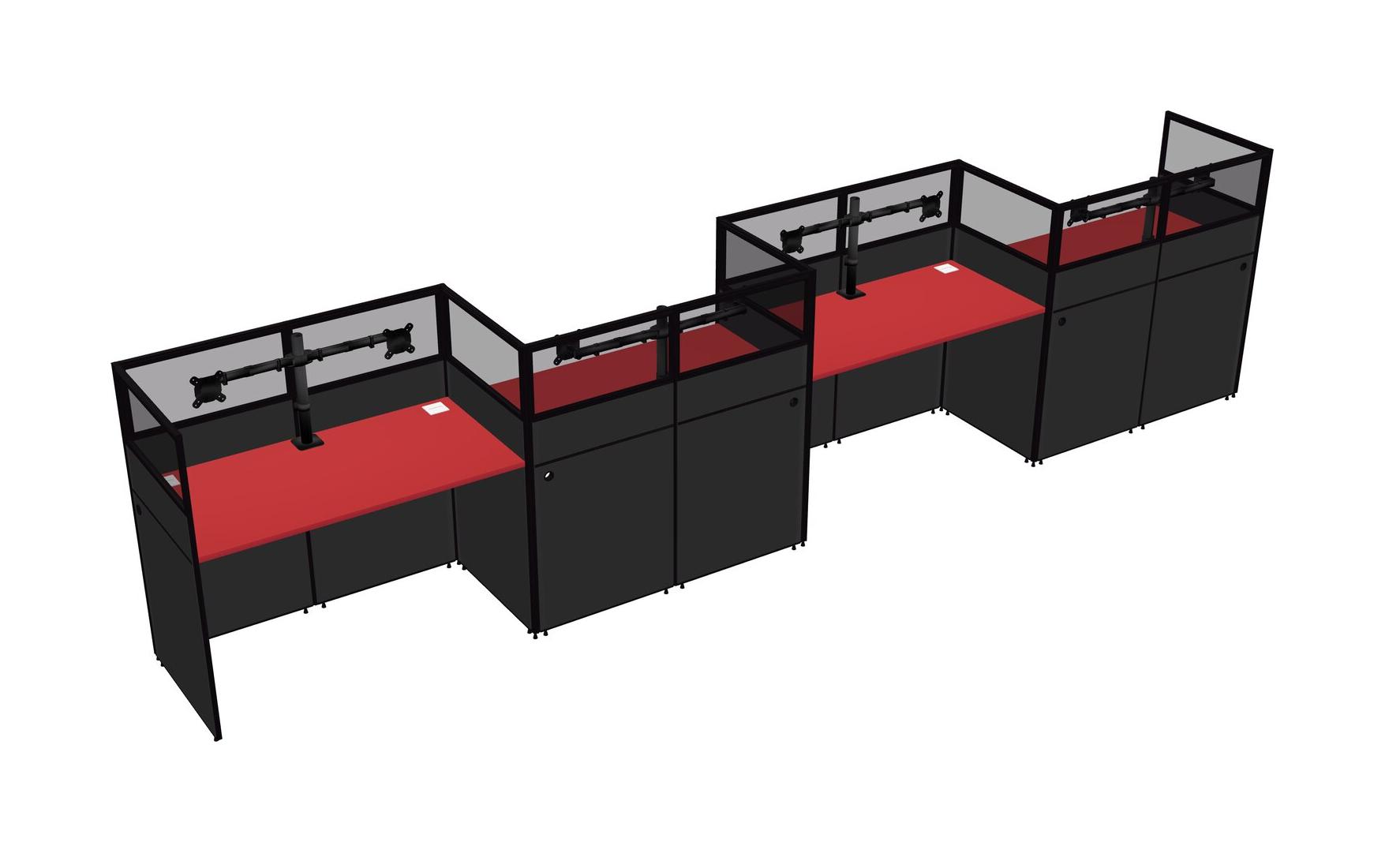 Prism Red Rectangular Cubicle Workstations For 4 - Zigzag Formation