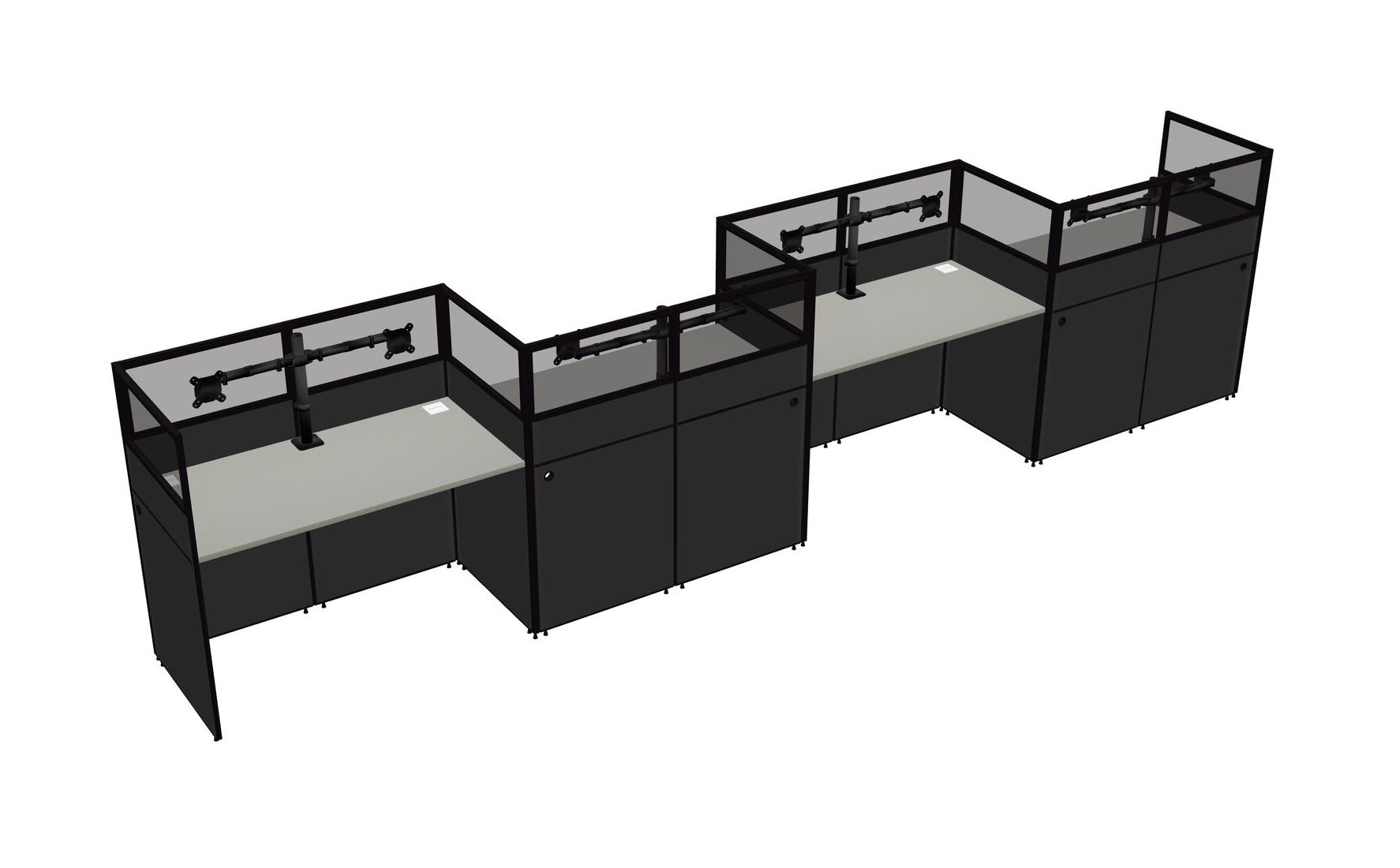 Grey Shadows Rectangular Cubicle Workstations For 4 - Zigzag Formation
