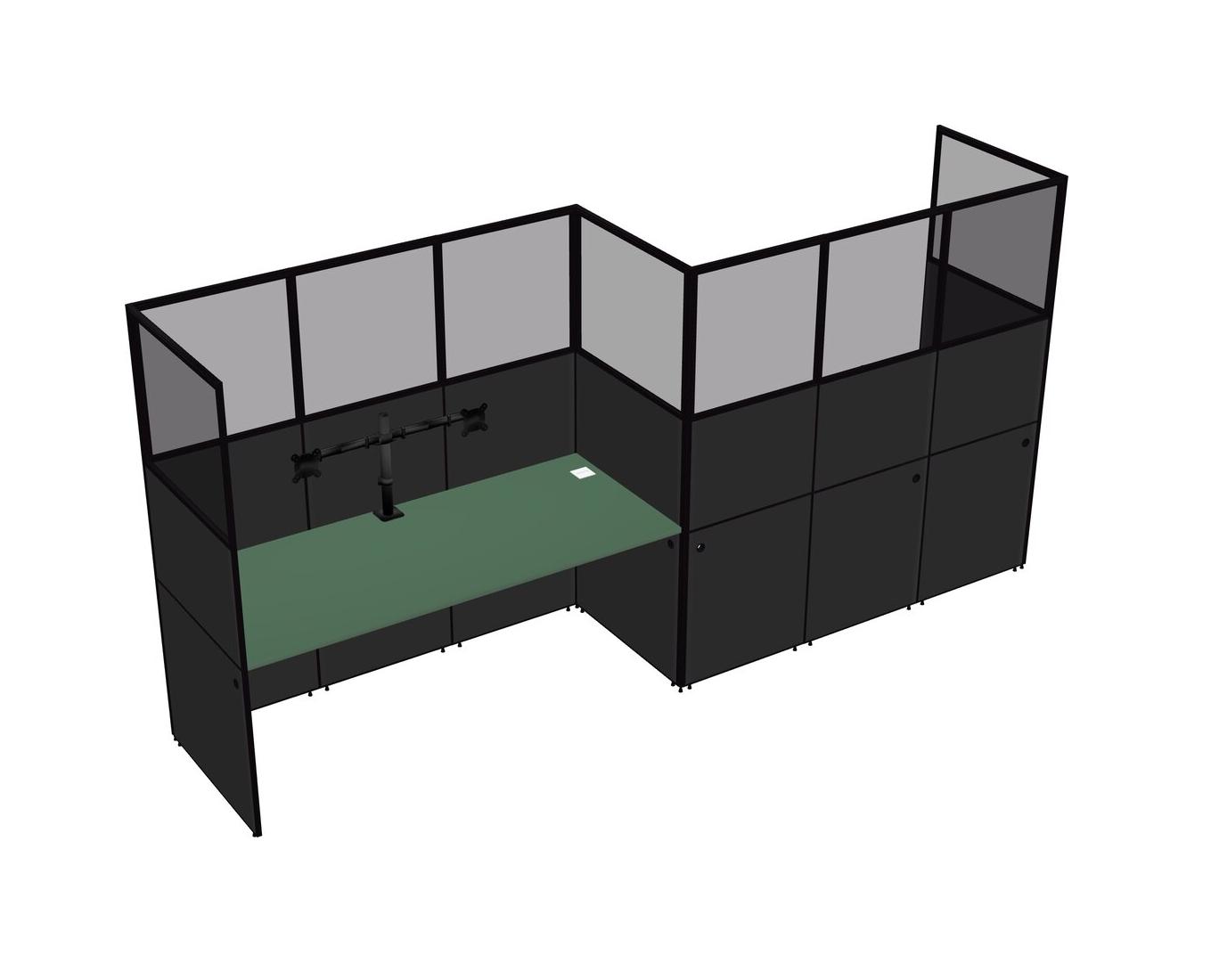 Green Rectangular Cubicle Workstations For 2 - Zigzag Formation
