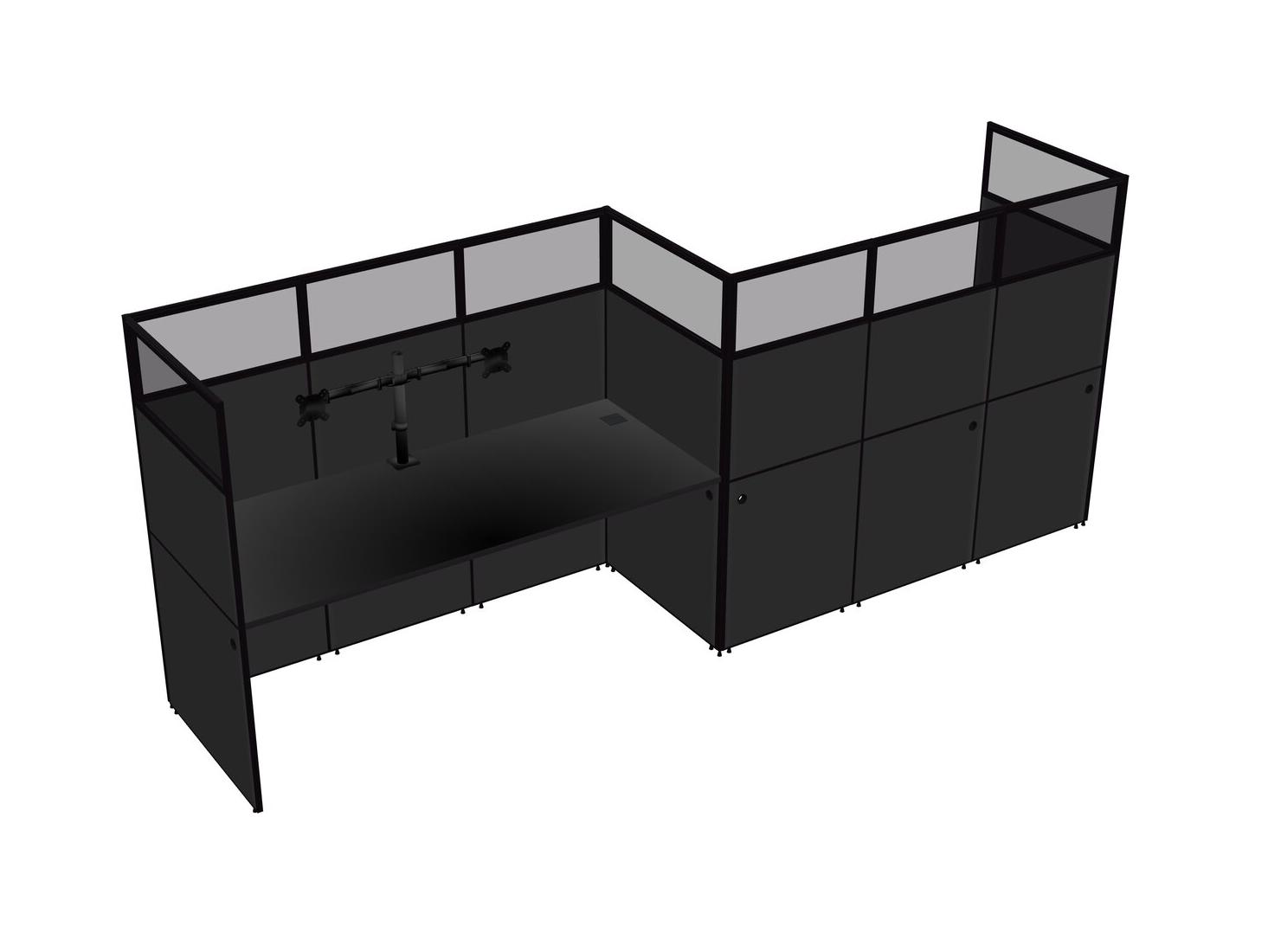Black Rectangular Cubicle Workstations For 2 - Zigzag Formation