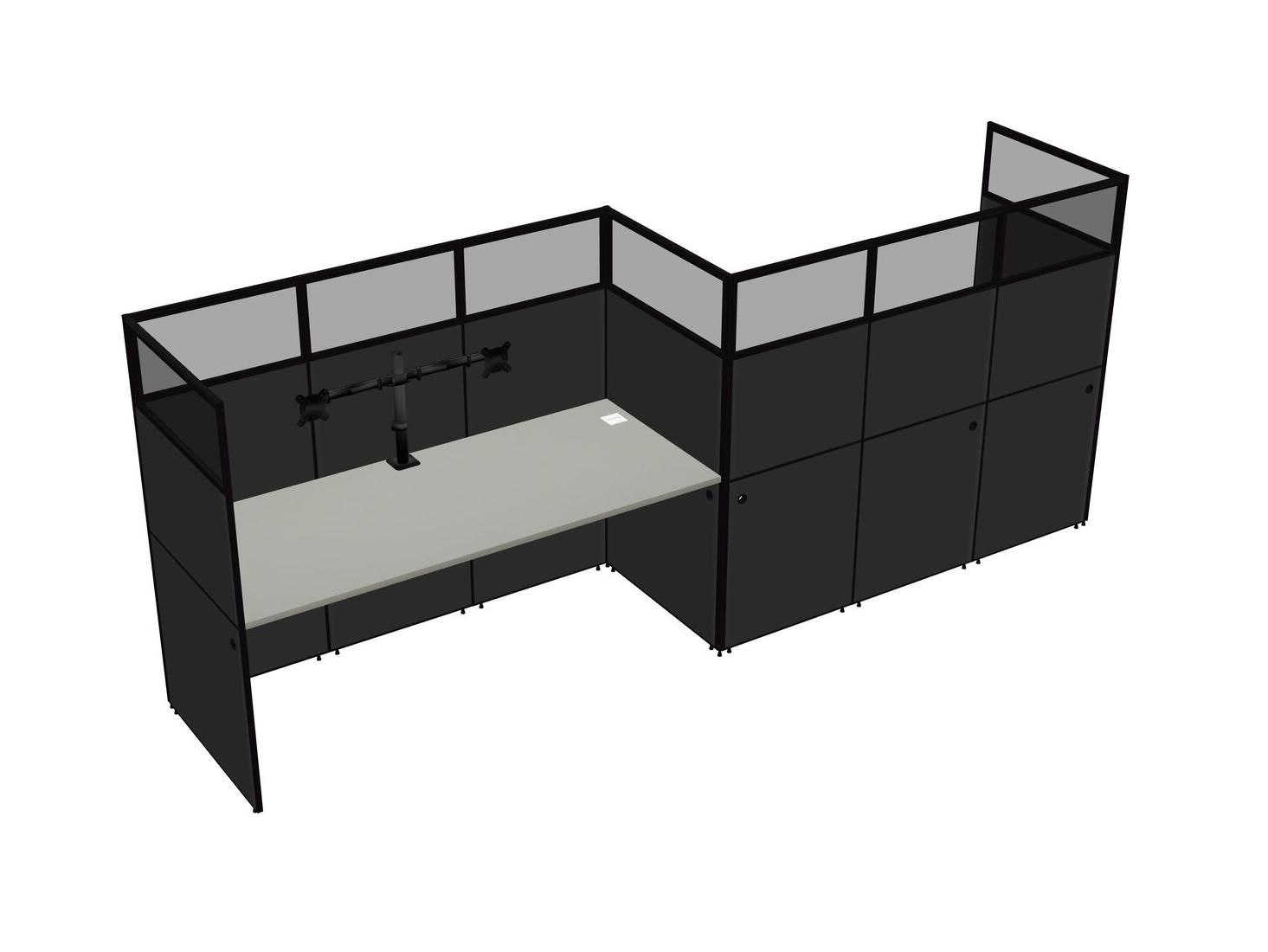 Grey Shadows Rectangular Cubicle Workstations For 2 - Zigzag Formation