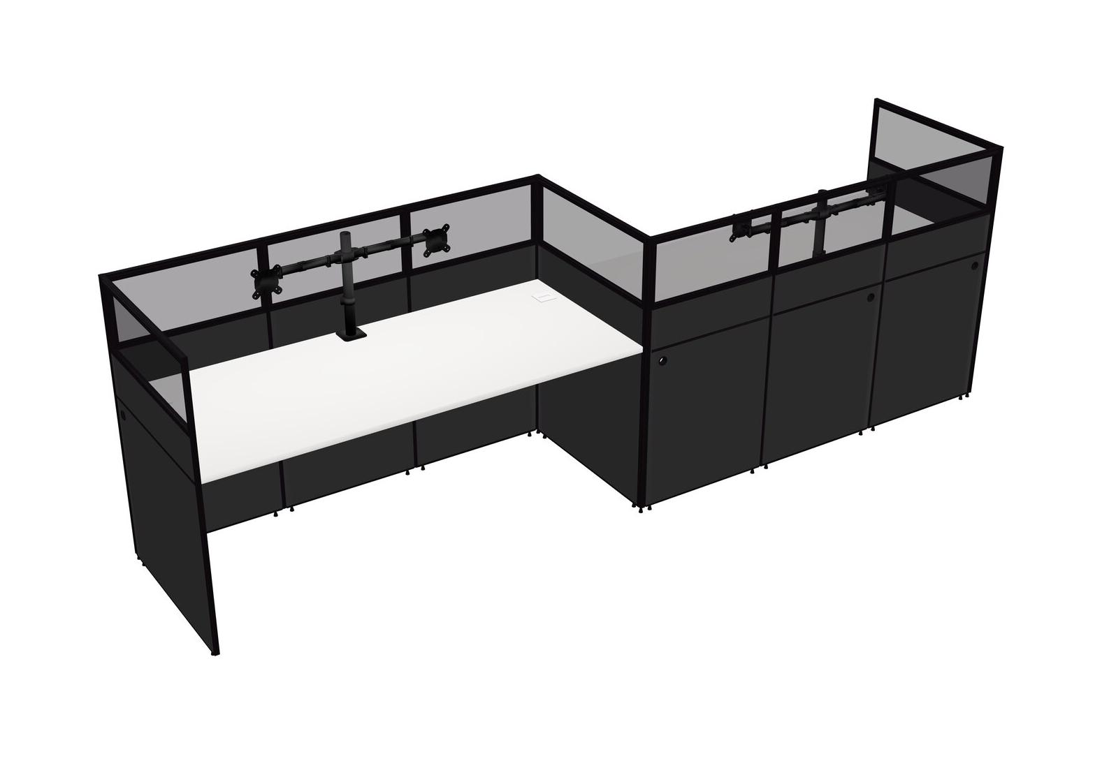 White Rectangular Cubicle Workstations For 2 - Zigzag Formation