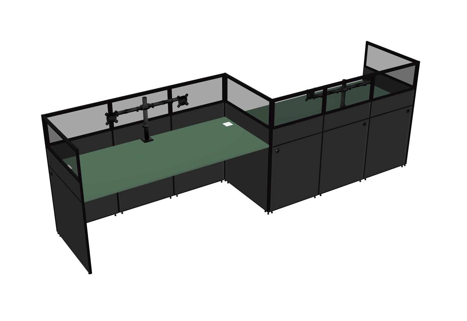 Green Rectangular Cubicle Workstations For 2 - Zigzag Formation