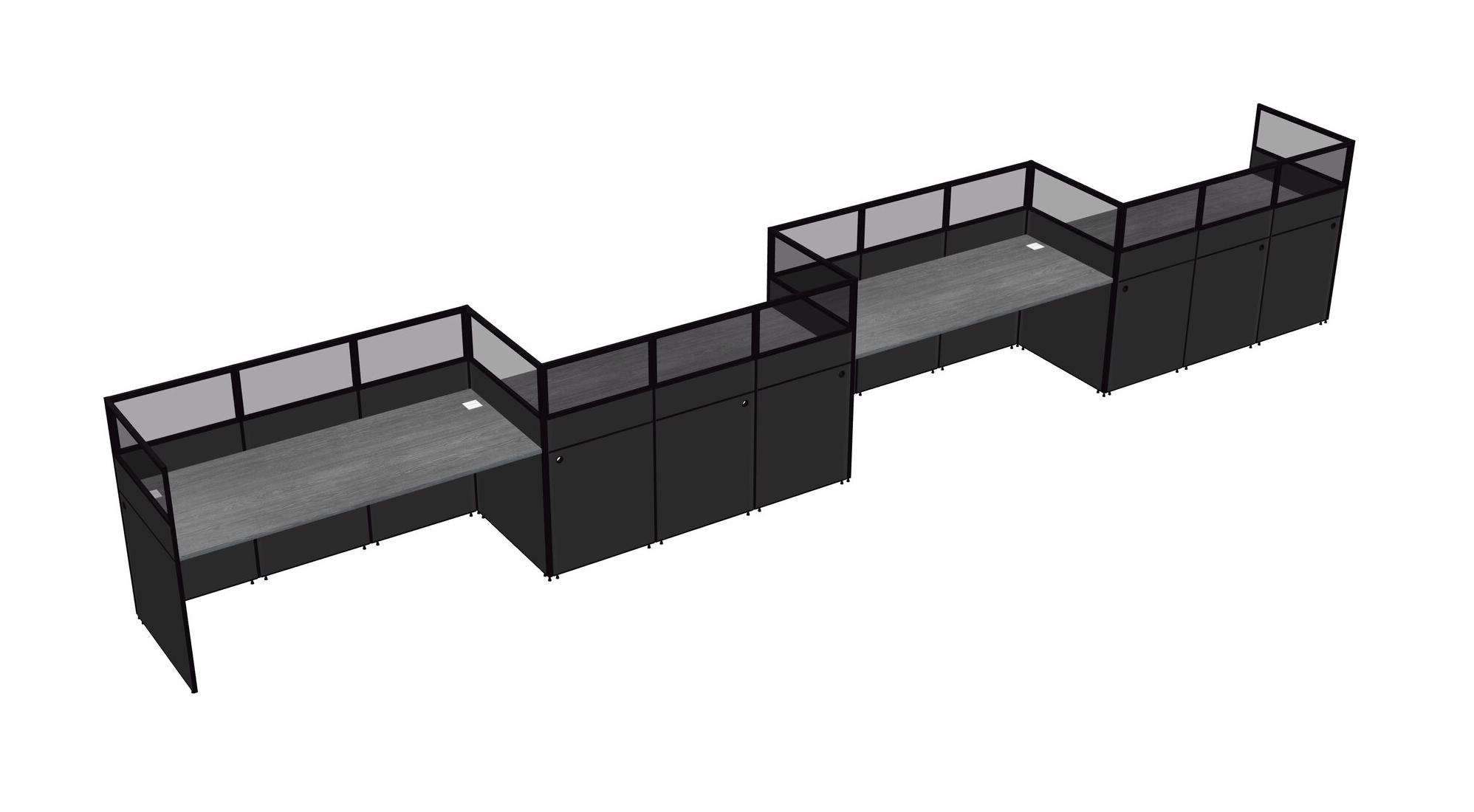 Grey Rectangular Cubicle Workstations For 4 - Zigzag Formation