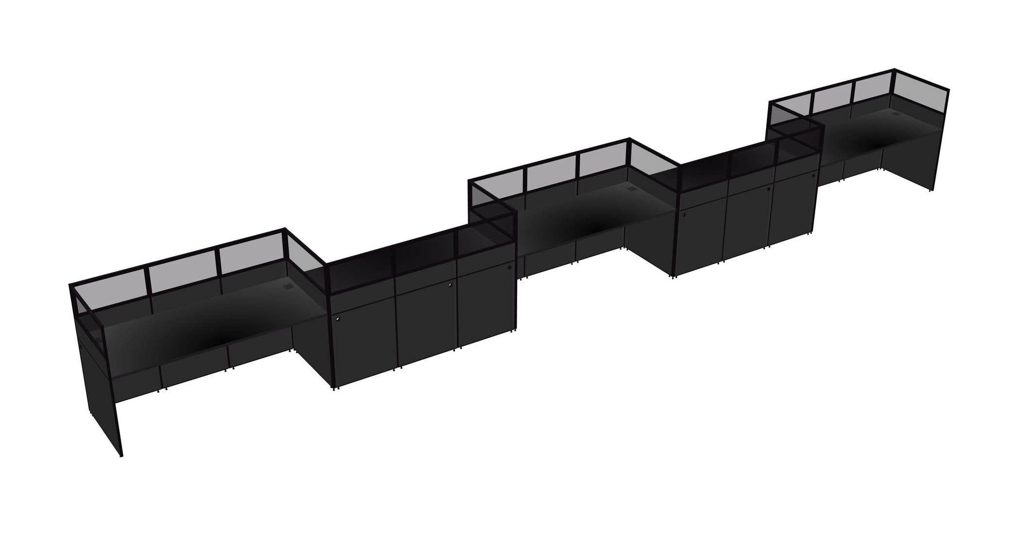 Black Rectangular Cubicle Workstations For 5 - Zigzag Formation