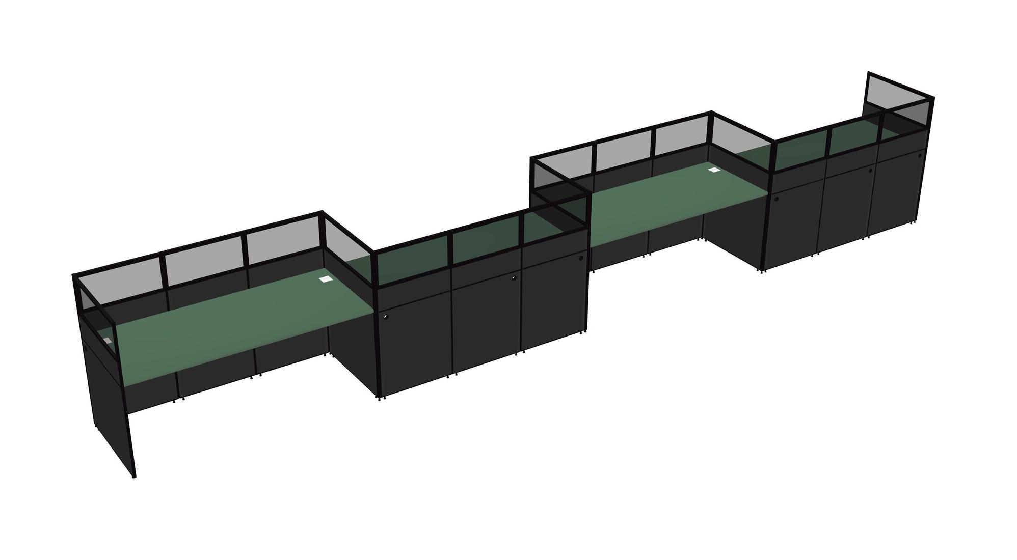Green Rectangular Cubicle Workstations For 4 - Zigzag Formation